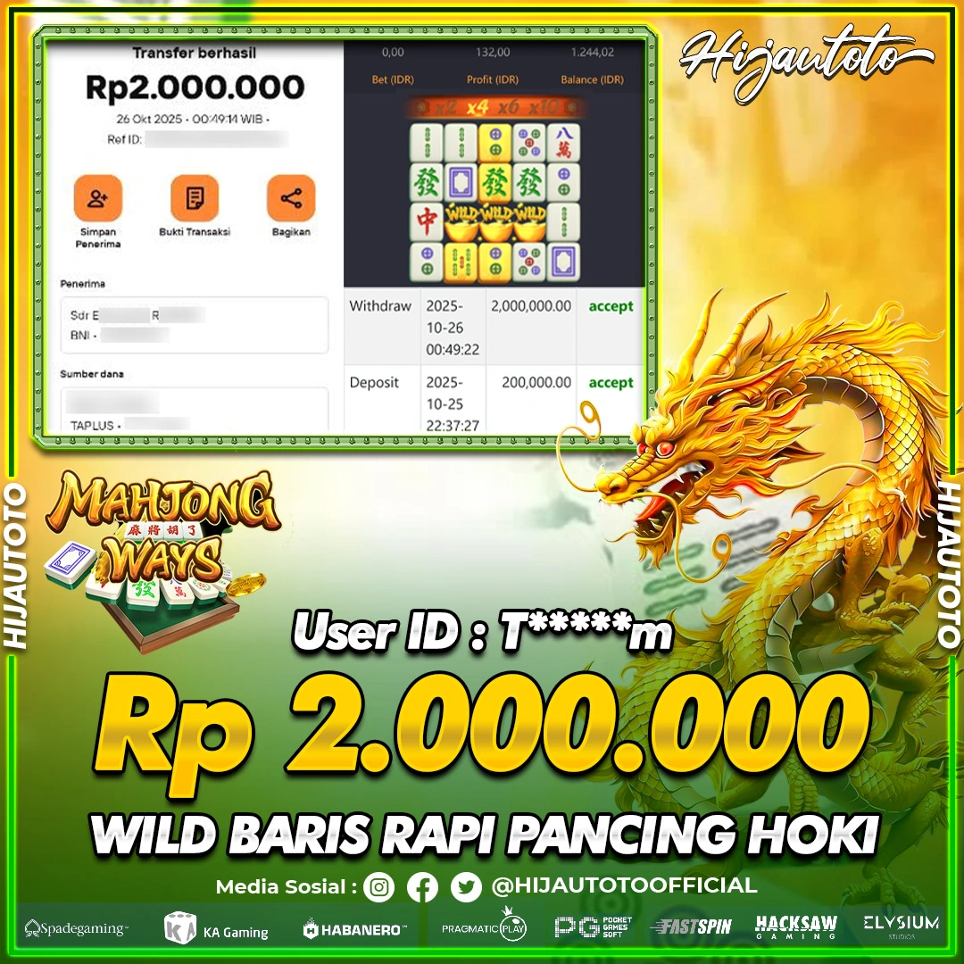 Selamat datang di HIJAUTOTO, tempatnya seru-seruan dan cuan besar! Mulai main cukup dengan modal Rp5.000 aja, taruhan super murah dari Rp100 perak! Mau main slot yang penuh warna? Atau togel dari 20 pasaran paling hits? Atau mungkin tembak ikan yang bikin deg-degan? Tenang, ada juga taruhan bola, sabung ayam, dan live casino yang bikin suasana makin hidup! Daftar sekarang dan dapetin bonus new member 100% langsung, biar modalmu makin tebal. Deposit gampang banget, bisa pakai QRIS, dan kalau butuh bantuan, customer service kita siap 24 jam nonstop. Jadi, tunggu apa lagi? Yuk, gabung dan bawa pulang kemenangannya cuma di HIJAUTOTO!