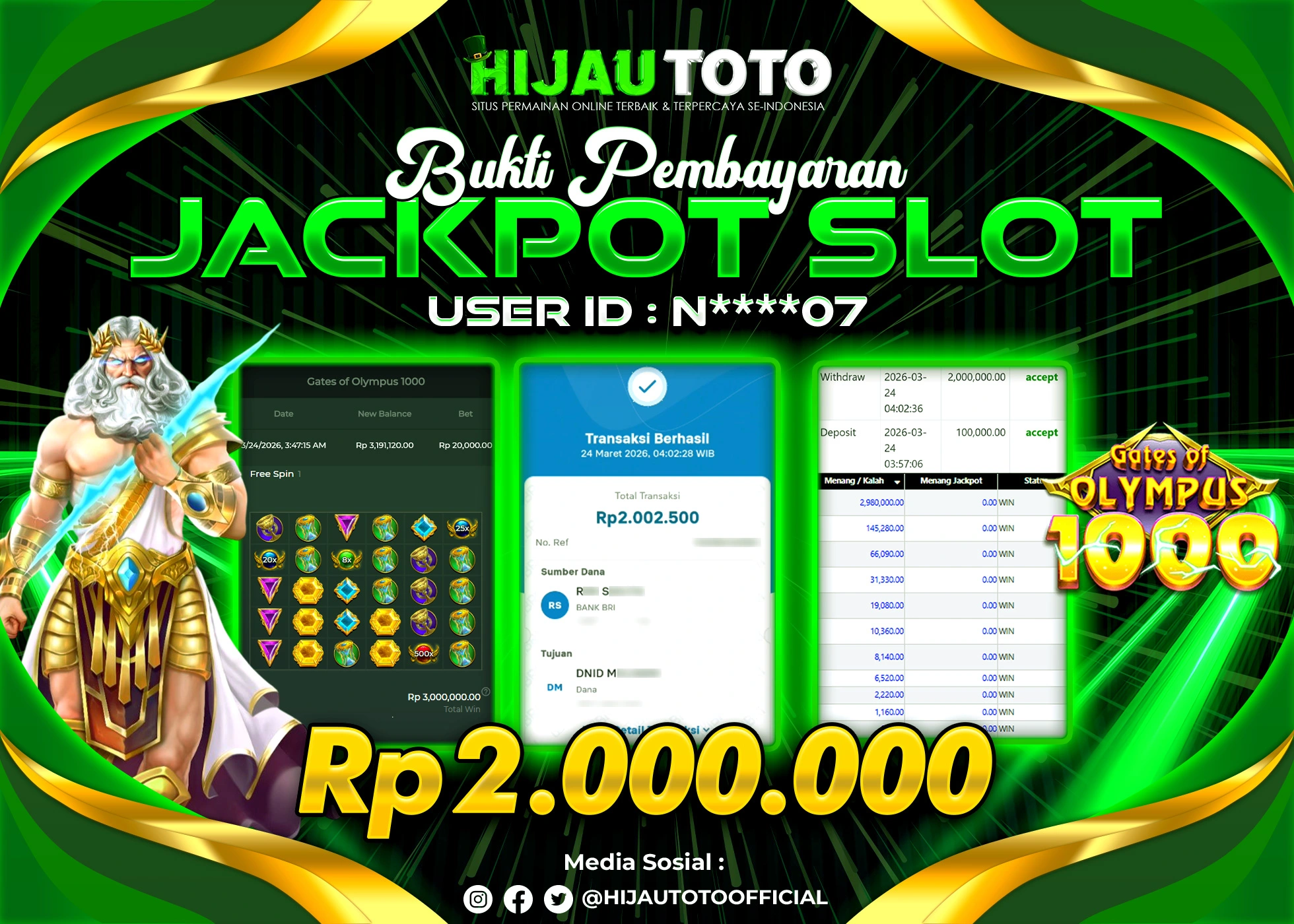 Selamat datang di HIJAUTOTO, tempatnya seru-seruan dan cuan besar! Mulai main cukup dengan modal Rp5.000 aja, taruhan super murah dari Rp100 perak! Mau main slot yang penuh warna? Atau togel dari 20 pasaran paling hits? Atau mungkin tembak ikan yang bikin deg-degan? Tenang, ada juga taruhan bola, sabung ayam, dan live casino yang bikin suasana makin hidup! Daftar sekarang dan dapetin bonus new member 100% langsung, biar modalmu makin tebal. Deposit gampang banget, bisa pakai QRIS, dan kalau butuh bantuan, customer service kita siap 24 jam nonstop. Jadi, tunggu apa lagi? Yuk, gabung dan bawa pulang kemenangannya cuma di HIJAUTOTO!