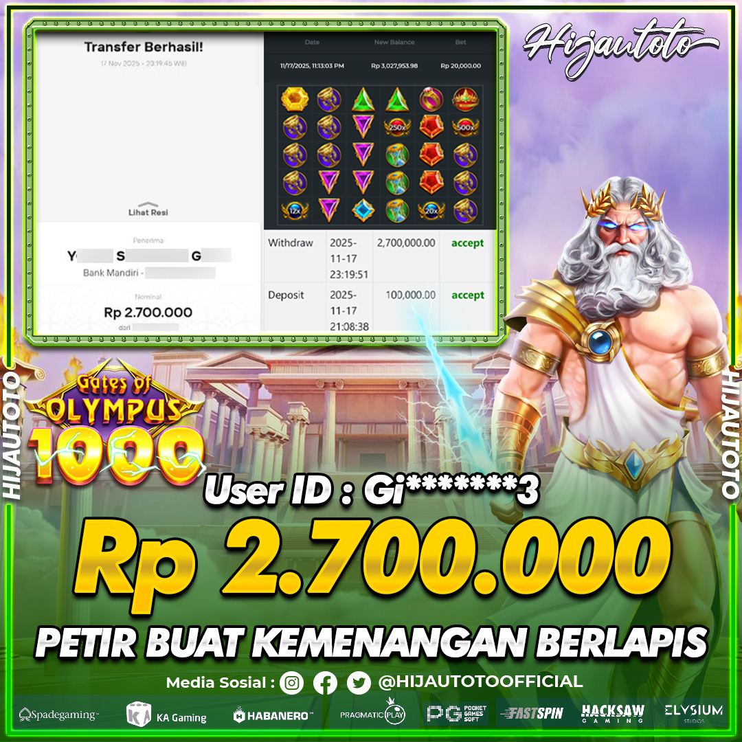 β¨ JACKPOT DI SLOT GATES OF OLYMPUS 1000 β¨