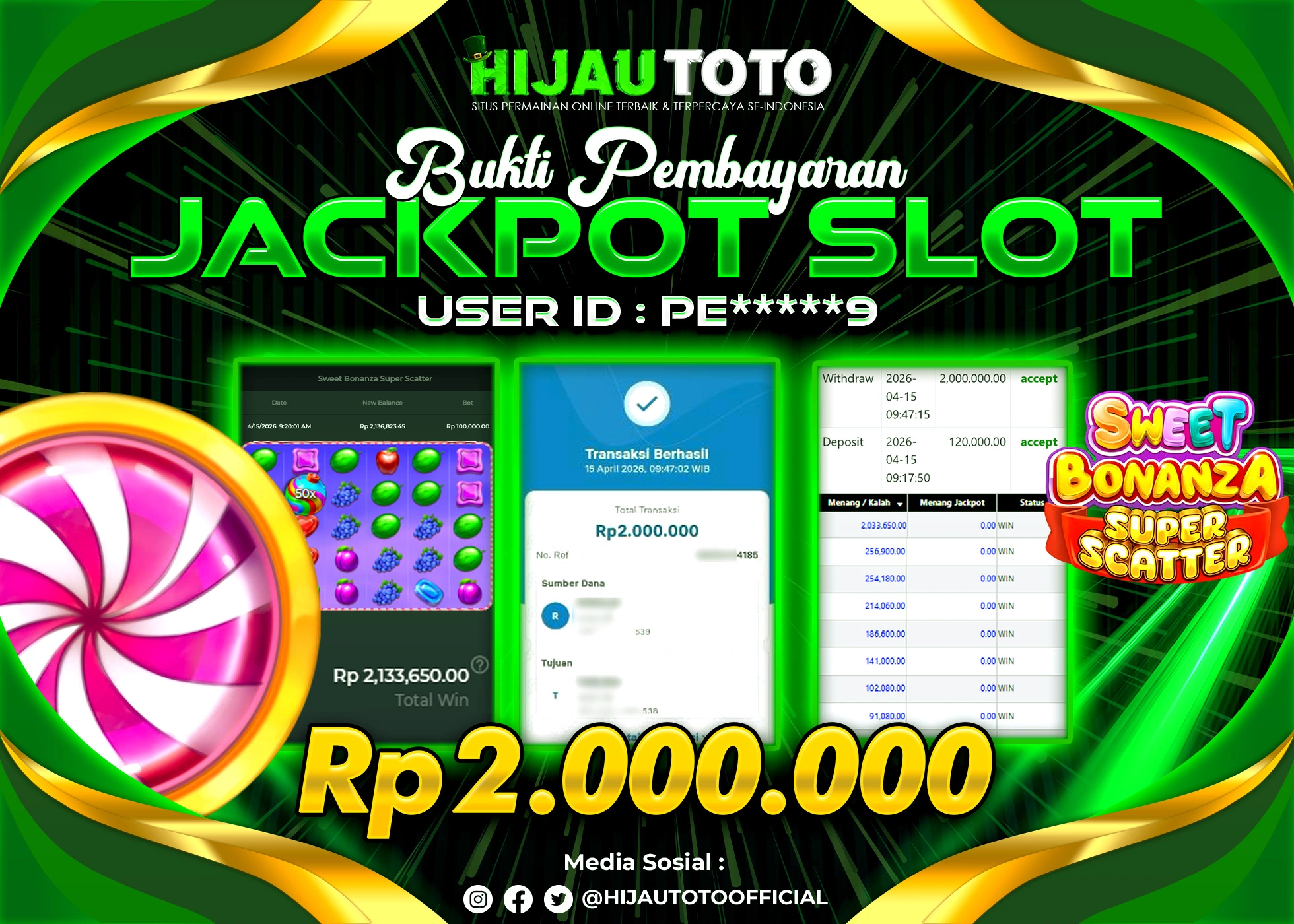 Selamat Kepada Member HIJAUTOTO PE****9 Telah Jackpot Di SLOT SWEET BONANZA SUPER SCATTER