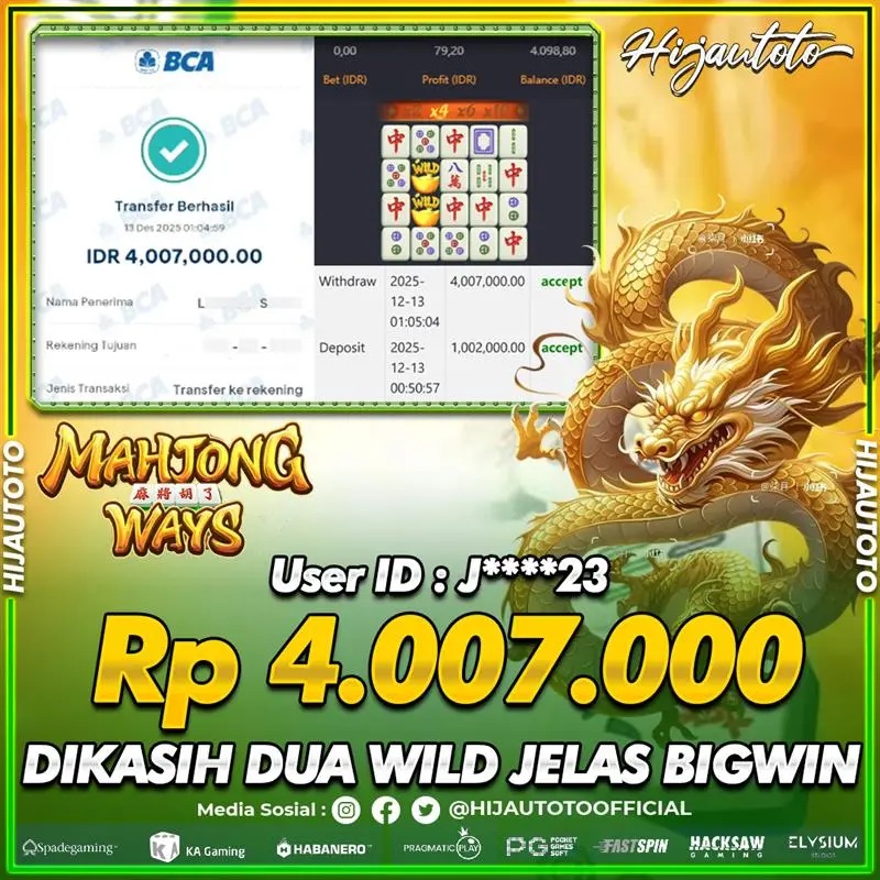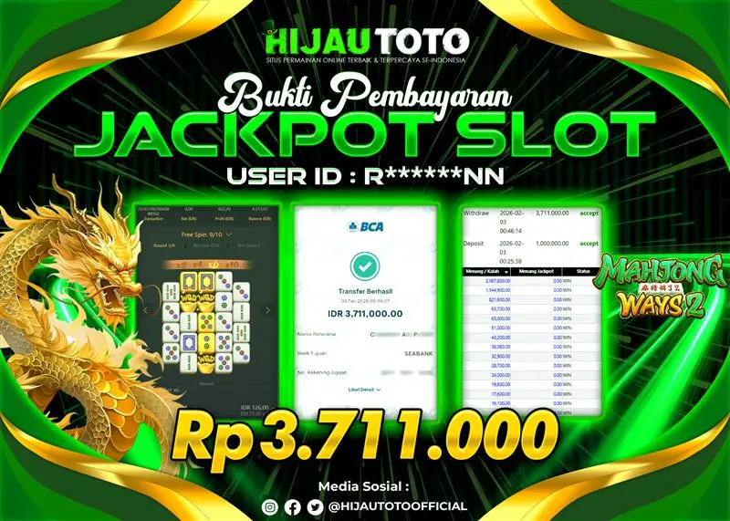 Selamat datang di HIJAUTOTO, tempatnya seru-seruan dan cuan besar! Mulai main cukup dengan modal Rp5.000 aja, taruhan super murah dari Rp100 perak! Mau main slot yang penuh warna? Atau togel dari 20 pasaran paling hits? Atau mungkin tembak ikan yang bikin deg-degan? Tenang, ada juga taruhan bola, sabung ayam, dan live casino yang bikin suasana makin hidup! Daftar sekarang dan dapetin bonus new member 100% langsung, biar modalmu makin tebal. Deposit gampang banget, bisa pakai QRIS, dan kalau butuh bantuan, customer service kita siap 24 jam nonstop. Jadi, tunggu apa lagi? Yuk, gabung dan bawa pulang kemenangannya cuma di HIJAUTOTO!