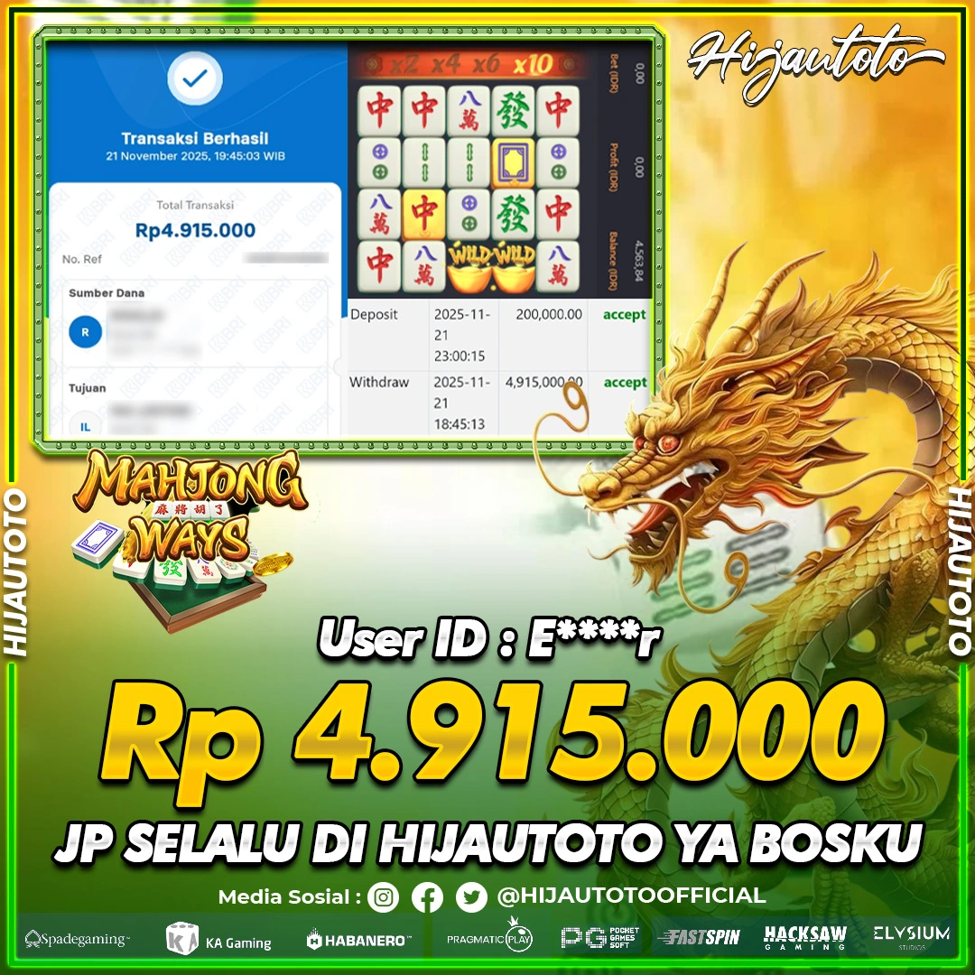 Selamat datang di HIJAUTOTO, tempatnya seru-seruan dan cuan besar! Mulai main cukup dengan modal Rp5.000 aja, taruhan super murah dari Rp100 perak! Mau main slot yang penuh warna? Atau togel dari 20 pasaran paling hits? Atau mungkin tembak ikan yang bikin deg-degan? Tenang, ada juga taruhan bola, sabung ayam, dan live casino yang bikin suasana makin hidup! Daftar sekarang dan dapetin bonus new member 100% langsung, biar modalmu makin tebal. Deposit gampang banget, bisa pakai QRIS, dan kalau butuh bantuan, customer service kita siap 24 jam nonstop. Jadi, tunggu apa lagi? Yuk, gabung dan bawa pulang kemenangannya cuma di HIJAUTOTO!