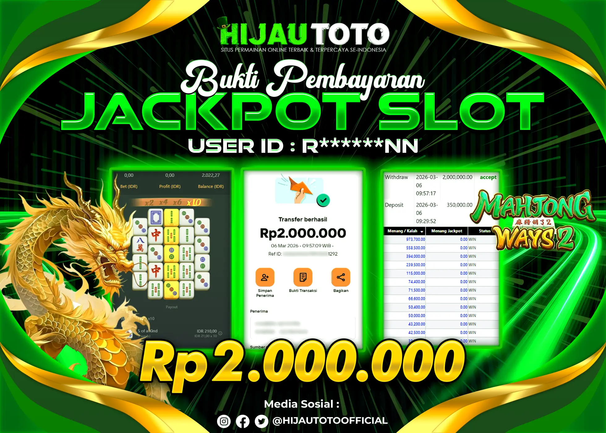 Selamat datang di HIJAUTOTO, tempatnya seru-seruan dan cuan besar! Mulai main cukup dengan modal Rp5.000 aja, taruhan super murah dari Rp100 perak! Mau main slot yang penuh warna? Atau togel dari 20 pasaran paling hits? Atau mungkin tembak ikan yang bikin deg-degan? Tenang, ada juga taruhan bola, sabung ayam, dan live casino yang bikin suasana makin hidup! Daftar sekarang dan dapetin bonus new member 100% langsung, biar modalmu makin tebal. Deposit gampang banget, bisa pakai QRIS, dan kalau butuh bantuan, customer service kita siap 24 jam nonstop. Jadi, tunggu apa lagi? Yuk, gabung dan bawa pulang kemenangannya cuma di HIJAUTOTO!