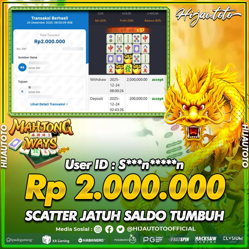 Selamat datang di HIJAUTOTO, tempatnya seru-seruan dan cuan besar! Mulai main cukup dengan modal Rp5.000 aja, taruhan super murah dari Rp100 perak! Mau main slot yang penuh warna? Atau togel dari 20 pasaran paling hits? Atau mungkin tembak ikan yang bikin deg-degan? Tenang, ada juga taruhan bola, sabung ayam, dan live casino yang bikin suasana makin hidup! Daftar sekarang dan dapetin bonus new member 100% langsung, biar modalmu makin tebal. Deposit gampang banget, bisa pakai QRIS, dan kalau butuh bantuan, customer service kita siap 24 jam nonstop. Jadi, tunggu apa lagi? Yuk, gabung dan bawa pulang kemenangannya cuma di HIJAUTOTO!