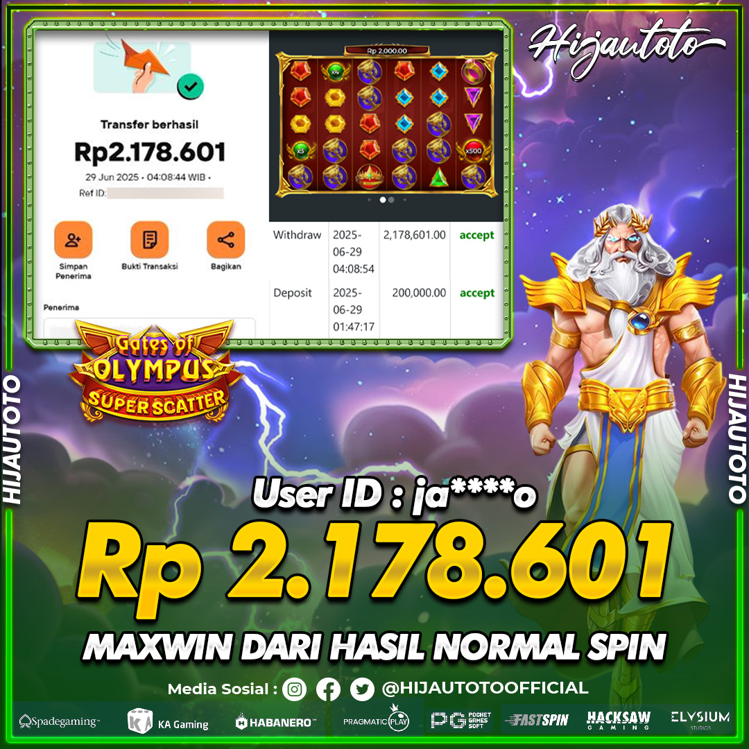 Selamat Kepada Member HIJAUTOTO JA****O Telah Jackpot Di SLOT GATES OF OLYMPUS SUPER SCATTER