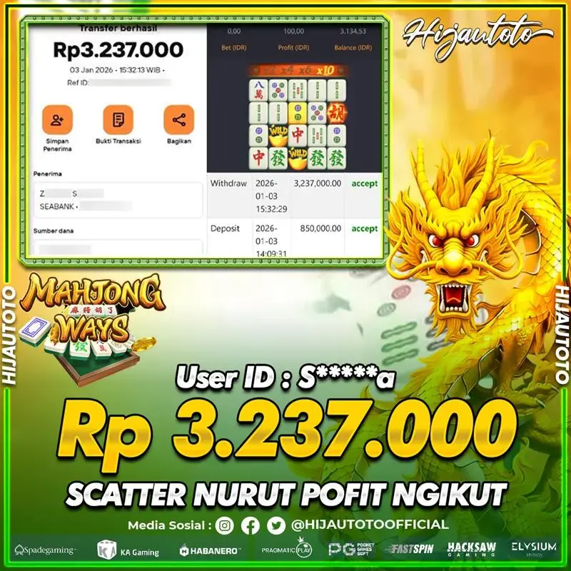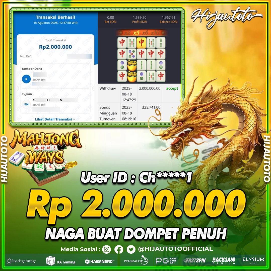 Selamat datang di HIJAUTOTO, tempatnya seru-seruan dan cuan besar! Mulai main cukup dengan modal Rp5.000 aja, taruhan super murah dari Rp100 perak! Mau main slot yang penuh warna? Atau togel dari 20 pasaran paling hits? Atau mungkin tembak ikan yang bikin deg-degan? Tenang, ada juga taruhan bola, sabung ayam, dan live casino yang bikin suasana makin hidup! Daftar sekarang dan dapetin bonus new member 100% langsung, biar modalmu makin tebal. Deposit gampang banget, bisa pakai QRIS, dan kalau butuh bantuan, customer service kita siap 24 jam nonstop. Jadi, tunggu apa lagi? Yuk, gabung dan bawa pulang kemenangannya cuma di HIJAUTOTO!