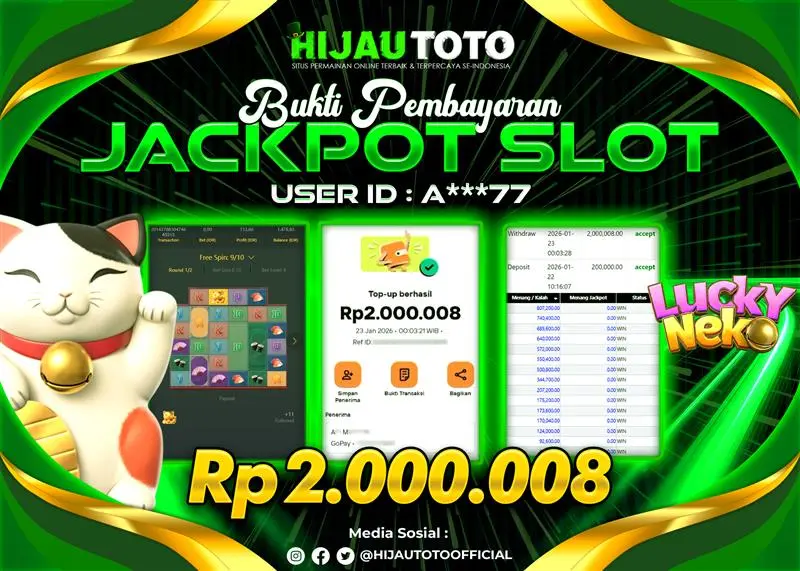 Selamat datang di HIJAUTOTO, tempatnya seru-seruan dan cuan besar! Mulai main cukup dengan modal Rp5.000 aja, taruhan super murah dari Rp100 perak! Mau main slot yang penuh warna? Atau togel dari 20 pasaran paling hits? Atau mungkin tembak ikan yang bikin deg-degan? Tenang, ada juga taruhan bola, sabung ayam, dan live casino yang bikin suasana makin hidup! Daftar sekarang dan dapetin bonus new member 100% langsung, biar modalmu makin tebal. Deposit gampang banget, bisa pakai QRIS, dan kalau butuh bantuan, customer service kita siap 24 jam nonstop. Jadi, tunggu apa lagi? Yuk, gabung dan bawa pulang kemenangannya cuma di HIJAUTOTO!