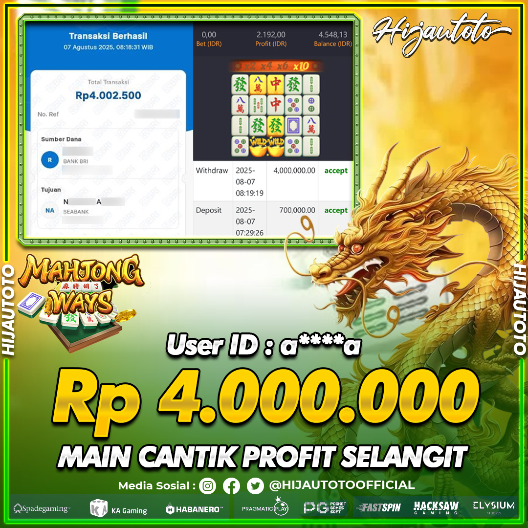 Selamat datang di HIJAUTOTO, tempatnya seru-seruan dan cuan besar! Mulai main cukup dengan modal Rp5.000 aja, taruhan super murah dari Rp100 perak! Mau main slot yang penuh warna? Atau togel dari 20 pasaran paling hits? Atau mungkin tembak ikan yang bikin deg-degan? Tenang, ada juga taruhan bola, sabung ayam, dan live casino yang bikin suasana makin hidup! Daftar sekarang dan dapetin bonus new member 100% langsung, biar modalmu makin tebal. Deposit gampang banget, bisa pakai QRIS, dan kalau butuh bantuan, customer service kita siap 24 jam nonstop. Jadi, tunggu apa lagi? Yuk, gabung dan bawa pulang kemenangannya cuma di HIJAUTOTO!