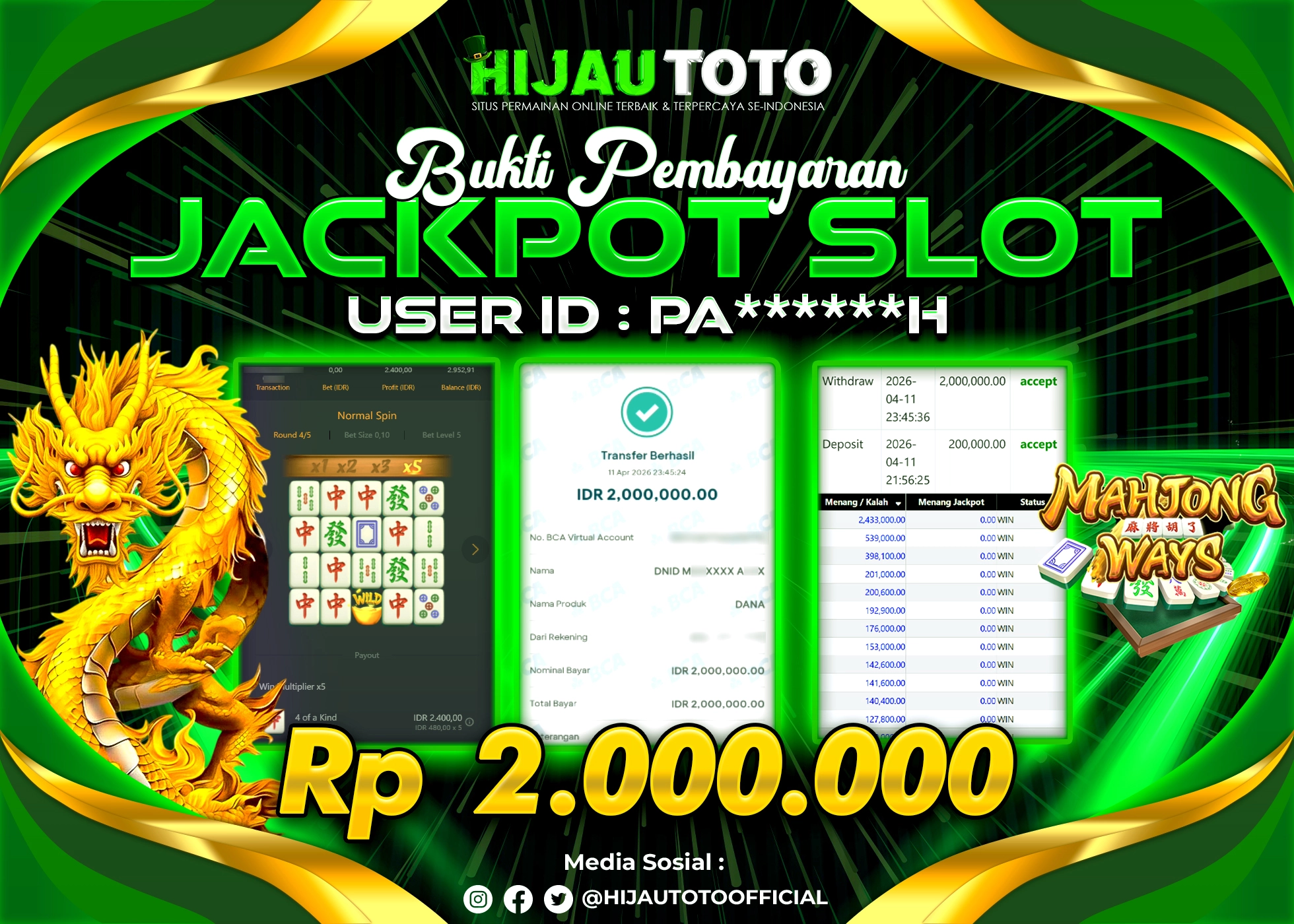 Selamat datang di HIJAUTOTO, tempatnya seru-seruan dan cuan besar! Mulai main cukup dengan modal Rp5.000 aja, taruhan super murah dari Rp100 perak! Mau main slot yang penuh warna? Atau togel dari 20 pasaran paling hits? Atau mungkin tembak ikan yang bikin deg-degan? Tenang, ada juga taruhan bola, sabung ayam, dan live casino yang bikin suasana makin hidup! Daftar sekarang dan dapetin bonus new member 100% langsung, biar modalmu makin tebal. Deposit gampang banget, bisa pakai QRIS, dan kalau butuh bantuan, customer service kita siap 24 jam nonstop. Jadi, tunggu apa lagi? Yuk, gabung dan bawa pulang kemenangannya cuma di HIJAUTOTO!