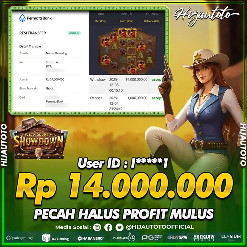 Selamat Kepada Member HIJAUTOTO I*****1 Telah Jackpot Di SLOT WILD BOUNTY SHOWDOWN