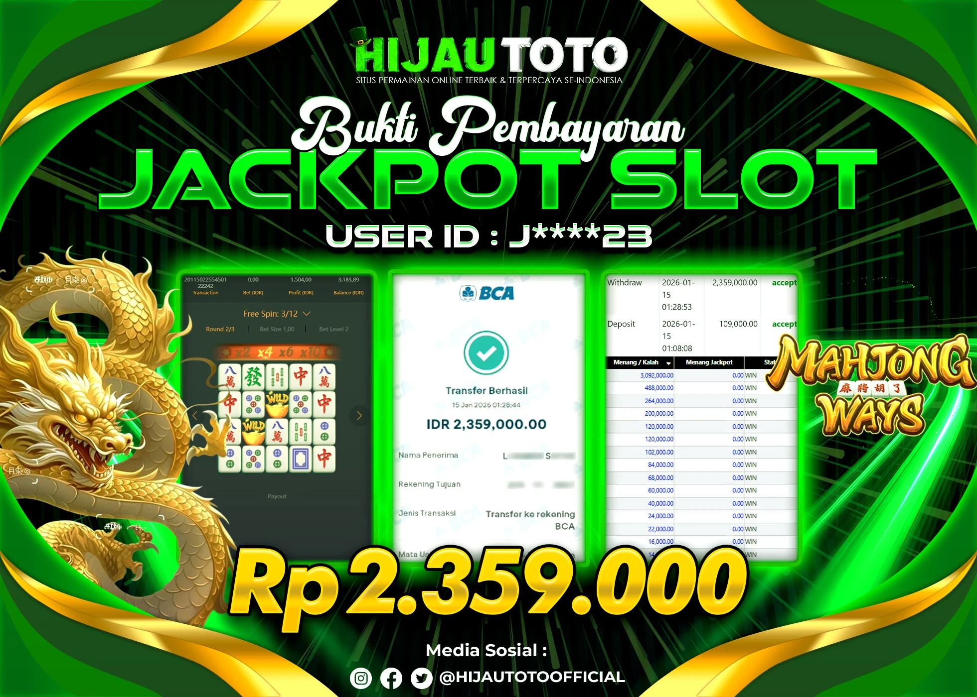 Selamat datang di HIJAUTOTO, tempatnya seru-seruan dan cuan besar! Mulai main cukup dengan modal Rp5.000 aja, taruhan super murah dari Rp100 perak! Mau main slot yang penuh warna? Atau togel dari 20 pasaran paling hits? Atau mungkin tembak ikan yang bikin deg-degan? Tenang, ada juga taruhan bola, sabung ayam, dan live casino yang bikin suasana makin hidup! Daftar sekarang dan dapetin bonus new member 100% langsung, biar modalmu makin tebal. Deposit gampang banget, bisa pakai QRIS, dan kalau butuh bantuan, customer service kita siap 24 jam nonstop. Jadi, tunggu apa lagi? Yuk, gabung dan bawa pulang kemenangannya cuma di HIJAUTOTO!