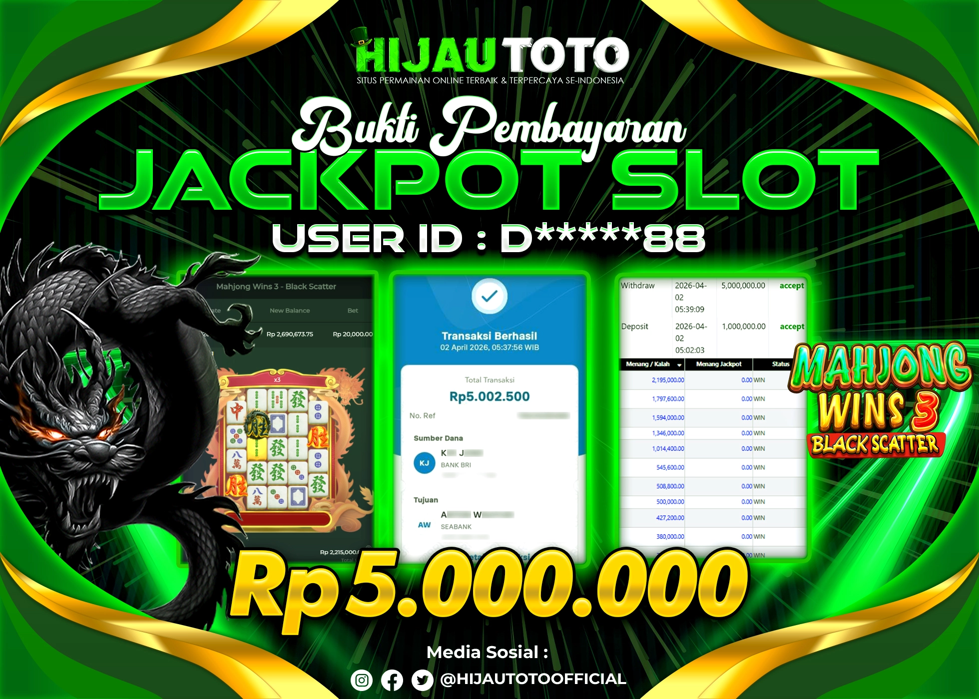 Selamat datang di HIJAUTOTO, tempatnya seru-seruan dan cuan besar! Mulai main cukup dengan modal Rp5.000 aja, taruhan super murah dari Rp100 perak! Mau main slot yang penuh warna? Atau togel dari 20 pasaran paling hits? Atau mungkin tembak ikan yang bikin deg-degan? Tenang, ada juga taruhan bola, sabung ayam, dan live casino yang bikin suasana makin hidup! Daftar sekarang dan dapetin bonus new member 100% langsung, biar modalmu makin tebal. Deposit gampang banget, bisa pakai QRIS, dan kalau butuh bantuan, customer service kita siap 24 jam nonstop. Jadi, tunggu apa lagi? Yuk, gabung dan bawa pulang kemenangannya cuma di HIJAUTOTO!