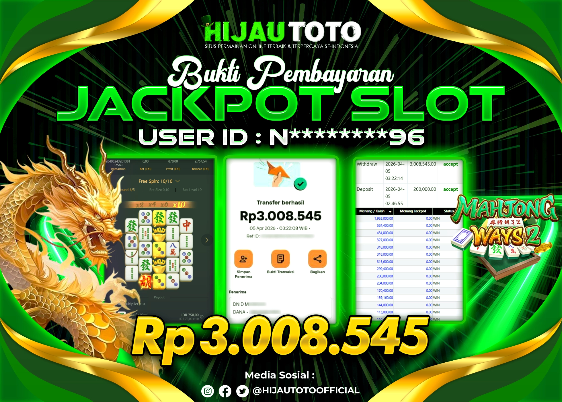 Bergabung dengan HIJAUTOTO sangat mudah dan cepat. Cukup lakukan pendaftaran dengan data lengkap, lakukan deposit minimal Rp5.000 melalui berbagai metode termasuk QRIS, dan mulai bertaruh dengan minimal taruhan Rp100. Dapatkan juga bonus new member 100% untuk modal bermain lebih besar.