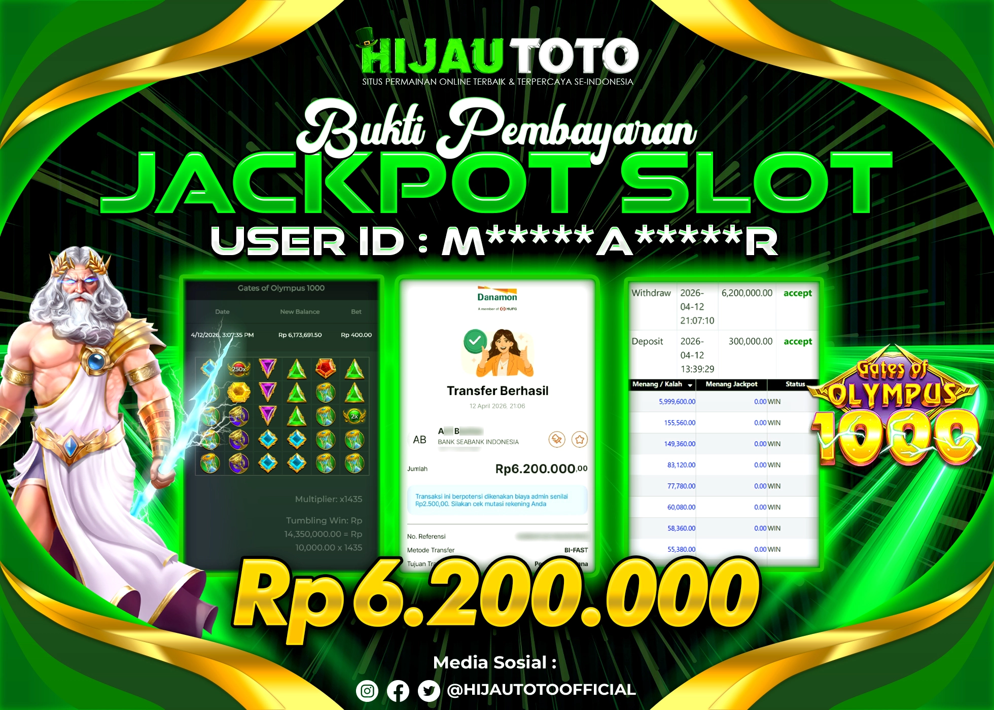 Selamat datang di HIJAUTOTO, tempatnya seru-seruan dan cuan besar! Mulai main cukup dengan modal Rp5.000 aja, taruhan super murah dari Rp100 perak! Mau main slot yang penuh warna? Atau togel dari 20 pasaran paling hits? Atau mungkin tembak ikan yang bikin deg-degan? Tenang, ada juga taruhan bola, sabung ayam, dan live casino yang bikin suasana makin hidup! Daftar sekarang dan dapetin bonus new member 100% langsung, biar modalmu makin tebal. Deposit gampang banget, bisa pakai QRIS, dan kalau butuh bantuan, customer service kita siap 24 jam nonstop. Jadi, tunggu apa lagi? Yuk, gabung dan bawa pulang kemenangannya cuma di HIJAUTOTO!