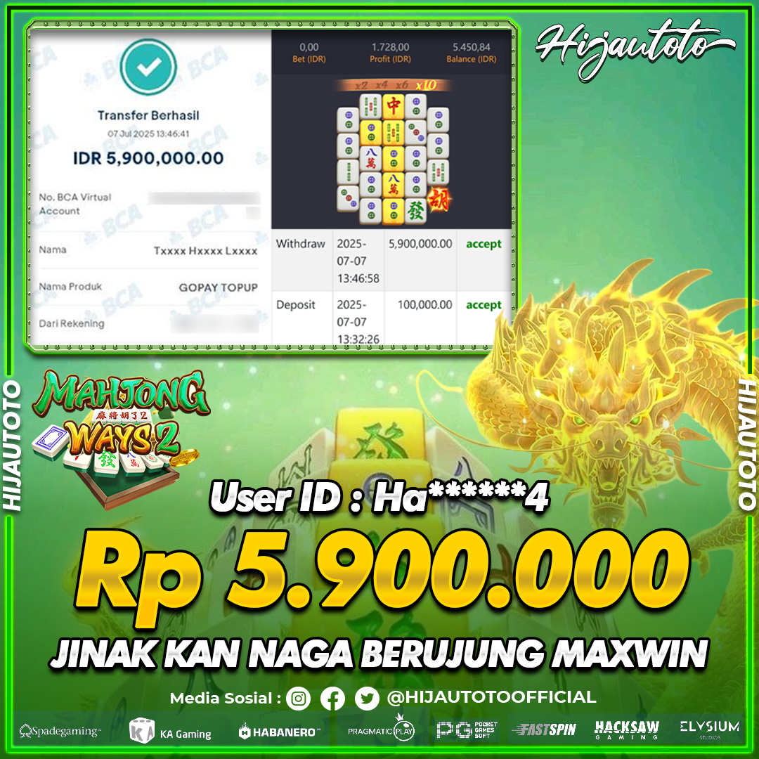 Selamat datang di HIJAUTOTO, tempatnya seru-seruan dan cuan besar! Mulai main cukup dengan modal Rp5.000 aja, taruhan super murah dari Rp100 perak! Mau main slot yang penuh warna? Atau togel dari 20 pasaran paling hits? Atau mungkin tembak ikan yang bikin deg-degan? Tenang, ada juga taruhan bola, sabung ayam, dan live casino yang bikin suasana makin hidup! Daftar sekarang dan dapetin bonus new member 100% langsung, biar modalmu makin tebal. Deposit gampang banget, bisa pakai QRIS, dan kalau butuh bantuan, customer service kita siap 24 jam nonstop. Jadi, tunggu apa lagi? Yuk, gabung dan bawa pulang kemenangannya cuma di HIJAUTOTO!