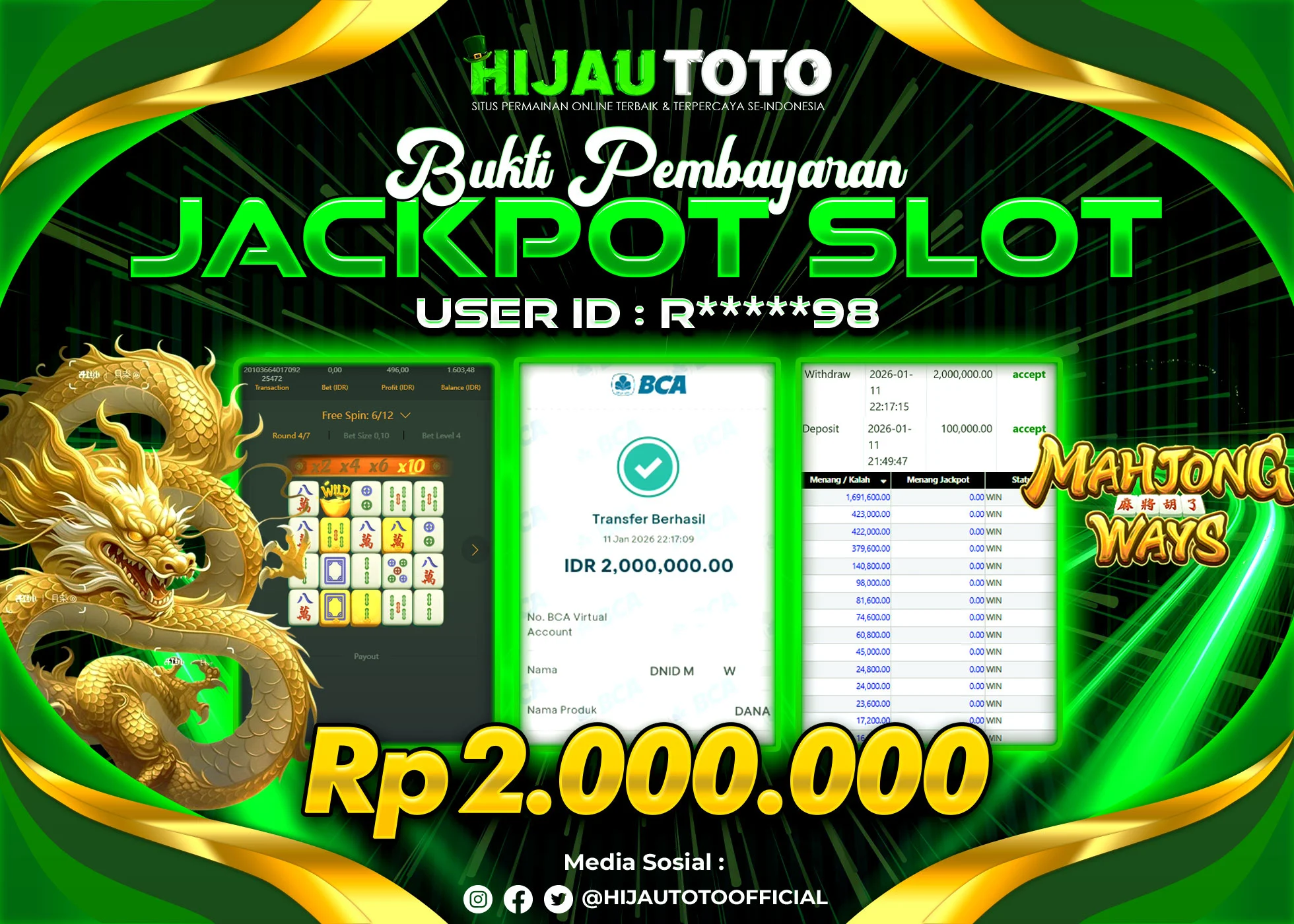 Selamat datang di HIJAUTOTO, tempatnya seru-seruan dan cuan besar! Mulai main cukup dengan modal Rp5.000 aja, taruhan super murah dari Rp100 perak! Mau main slot yang penuh warna? Atau togel dari 20 pasaran paling hits? Atau mungkin tembak ikan yang bikin deg-degan? Tenang, ada juga taruhan bola, sabung ayam, dan live casino yang bikin suasana makin hidup! Daftar sekarang dan dapetin bonus new member 100% langsung, biar modalmu makin tebal. Deposit gampang banget, bisa pakai QRIS, dan kalau butuh bantuan, customer service kita siap 24 jam nonstop. Jadi, tunggu apa lagi? Yuk, gabung dan bawa pulang kemenangannya cuma di HIJAUTOTO!