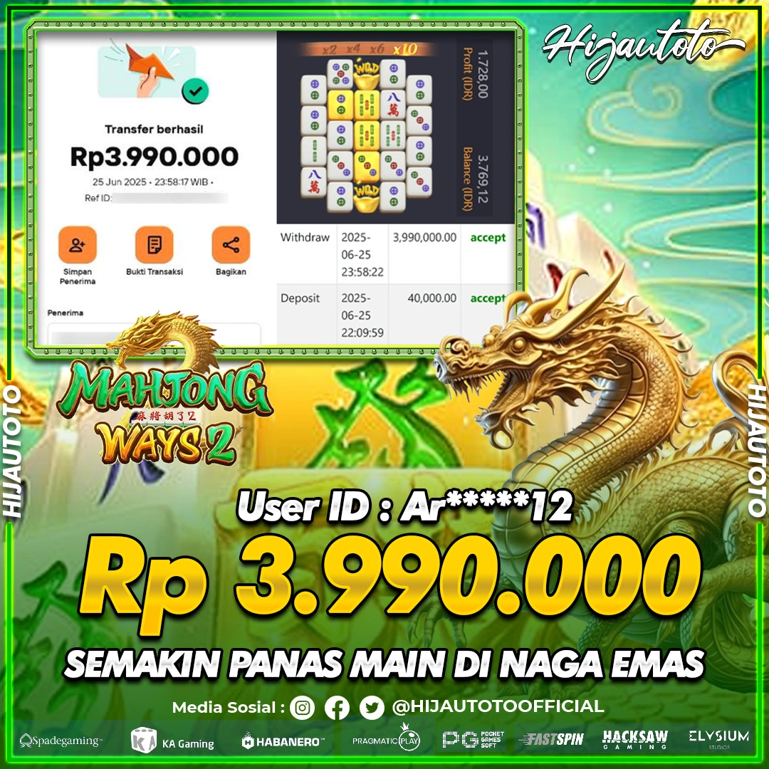 Selamat datang di HIJAUTOTO, tempatnya seru-seruan dan cuan besar! Mulai main cukup dengan modal Rp5.000 aja, taruhan super murah dari Rp100 perak! Mau main slot yang penuh warna? Atau togel dari 20 pasaran paling hits? Atau mungkin tembak ikan yang bikin deg-degan? Tenang, ada juga taruhan bola, sabung ayam, dan live casino yang bikin suasana makin hidup! Daftar sekarang dan dapetin bonus new member 100% langsung, biar modalmu makin tebal. Deposit gampang banget, bisa pakai QRIS, dan kalau butuh bantuan, customer service kita siap 24 jam nonstop. Jadi, tunggu apa lagi? Yuk, gabung dan bawa pulang kemenangannya cuma di HIJAUTOTO!