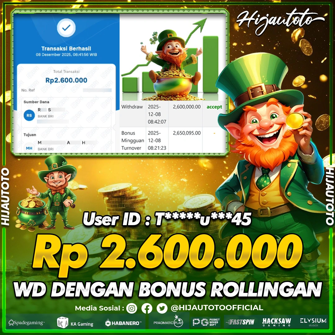 Selamat datang di HIJAUTOTO, tempatnya seru-seruan dan cuan besar! Mulai main cukup dengan modal Rp5.000 aja, taruhan super murah dari Rp100 perak! Mau main slot yang penuh warna? Atau togel dari 20 pasaran paling hits? Atau mungkin tembak ikan yang bikin deg-degan? Tenang, ada juga taruhan bola, sabung ayam, dan live casino yang bikin suasana makin hidup! Daftar sekarang dan dapetin bonus new member 100% langsung, biar modalmu makin tebal. Deposit gampang banget, bisa pakai QRIS, dan kalau butuh bantuan, customer service kita siap 24 jam nonstop. Jadi, tunggu apa lagi? Yuk, gabung dan bawa pulang kemenangannya cuma di HIJAUTOTO!