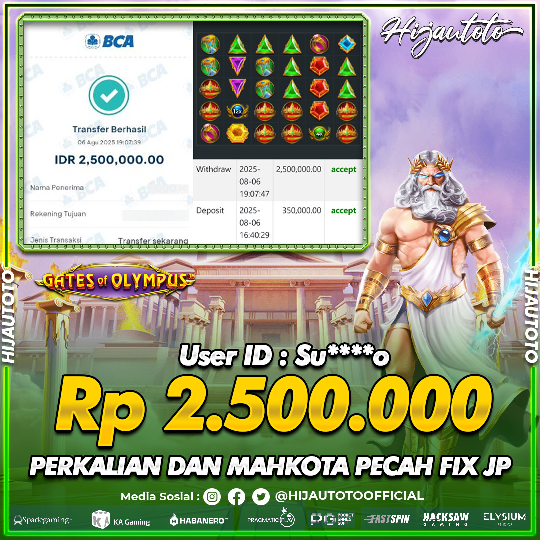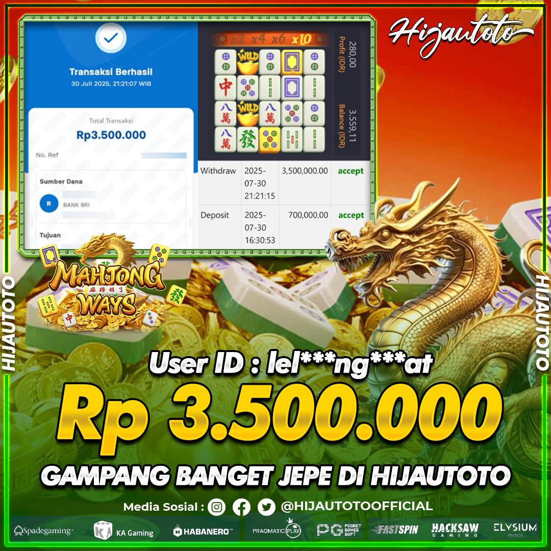 Selamat datang di HIJAUTOTO, tempatnya seru-seruan dan cuan besar! Mulai main cukup dengan modal Rp5.000 aja, taruhan super murah dari Rp100 perak! Mau main slot yang penuh warna? Atau togel dari 20 pasaran paling hits? Atau mungkin tembak ikan yang bikin deg-degan? Tenang, ada juga taruhan bola, sabung ayam, dan live casino yang bikin suasana makin hidup! Daftar sekarang dan dapetin bonus new member 100% langsung, biar modalmu makin tebal. Deposit gampang banget, bisa pakai QRIS, dan kalau butuh bantuan, customer service kita siap 24 jam nonstop. Jadi, tunggu apa lagi? Yuk, gabung dan bawa pulang kemenangannya cuma di HIJAUTOTO!