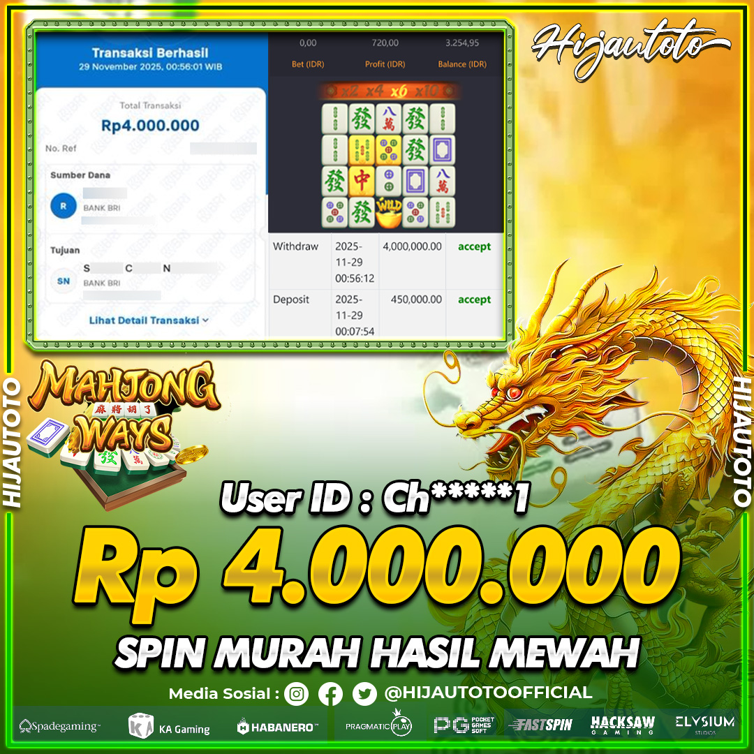 Selamat datang di HIJAUTOTO, tempatnya seru-seruan dan cuan besar! Mulai main cukup dengan modal Rp5.000 aja, taruhan super murah dari Rp100 perak! Mau main slot yang penuh warna? Atau togel dari 20 pasaran paling hits? Atau mungkin tembak ikan yang bikin deg-degan? Tenang, ada juga taruhan bola, sabung ayam, dan live casino yang bikin suasana makin hidup! Daftar sekarang dan dapetin bonus new member 100% langsung, biar modalmu makin tebal. Deposit gampang banget, bisa pakai QRIS, dan kalau butuh bantuan, customer service kita siap 24 jam nonstop. Jadi, tunggu apa lagi? Yuk, gabung dan bawa pulang kemenangannya cuma di HIJAUTOTO!