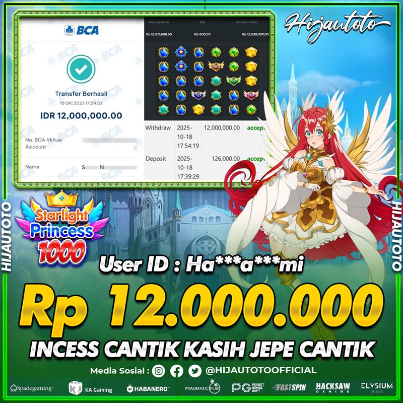 Selamat Kepada Member HIJAUTOTO HA*******MI Telah Jackpot Di SLOT STARLIGHT PRINCESS 1000
