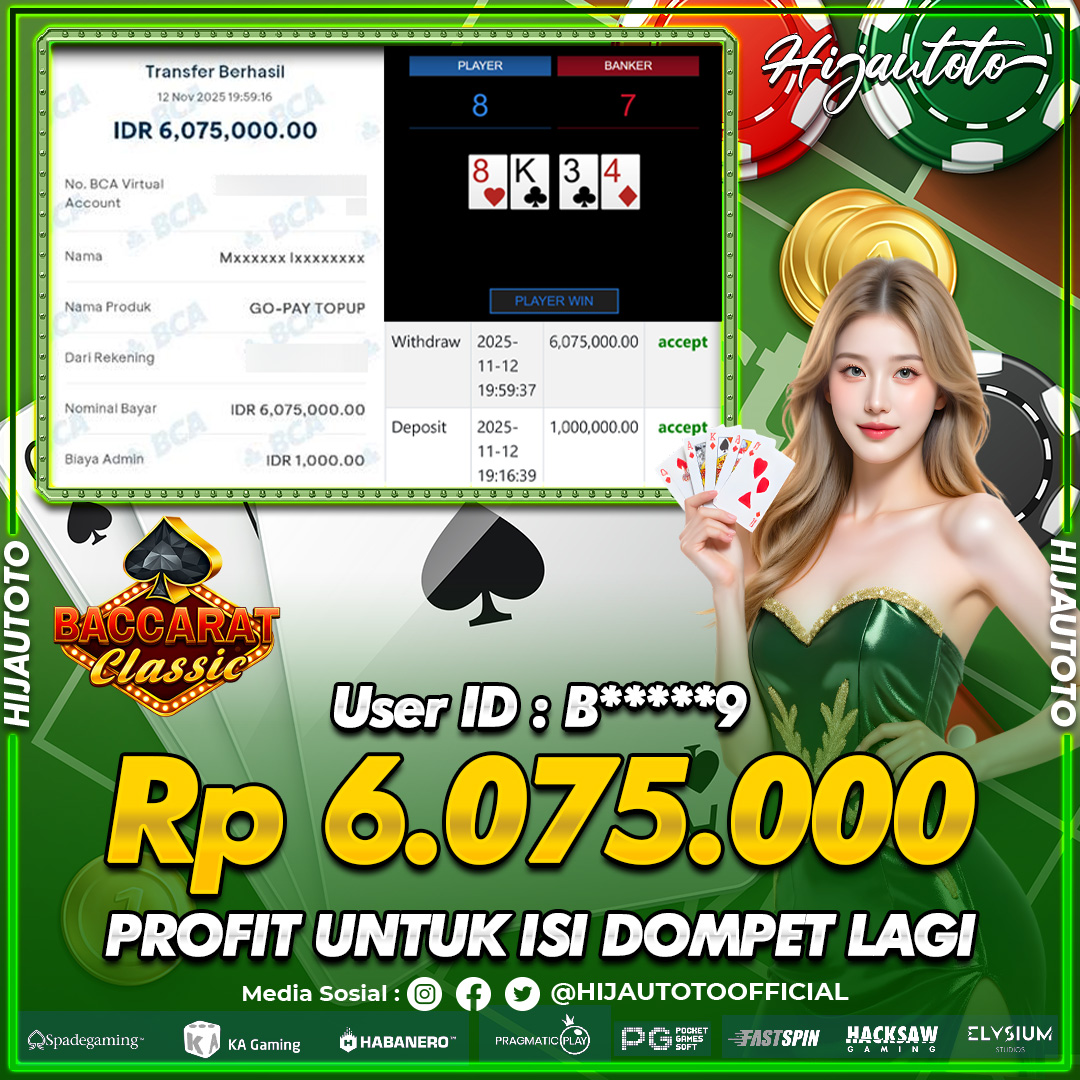 Selamat Kepada Member HIJAUTOTO B*****9 Telah Jackpot Di LIVE CASINO BACCARAT CLASSIC