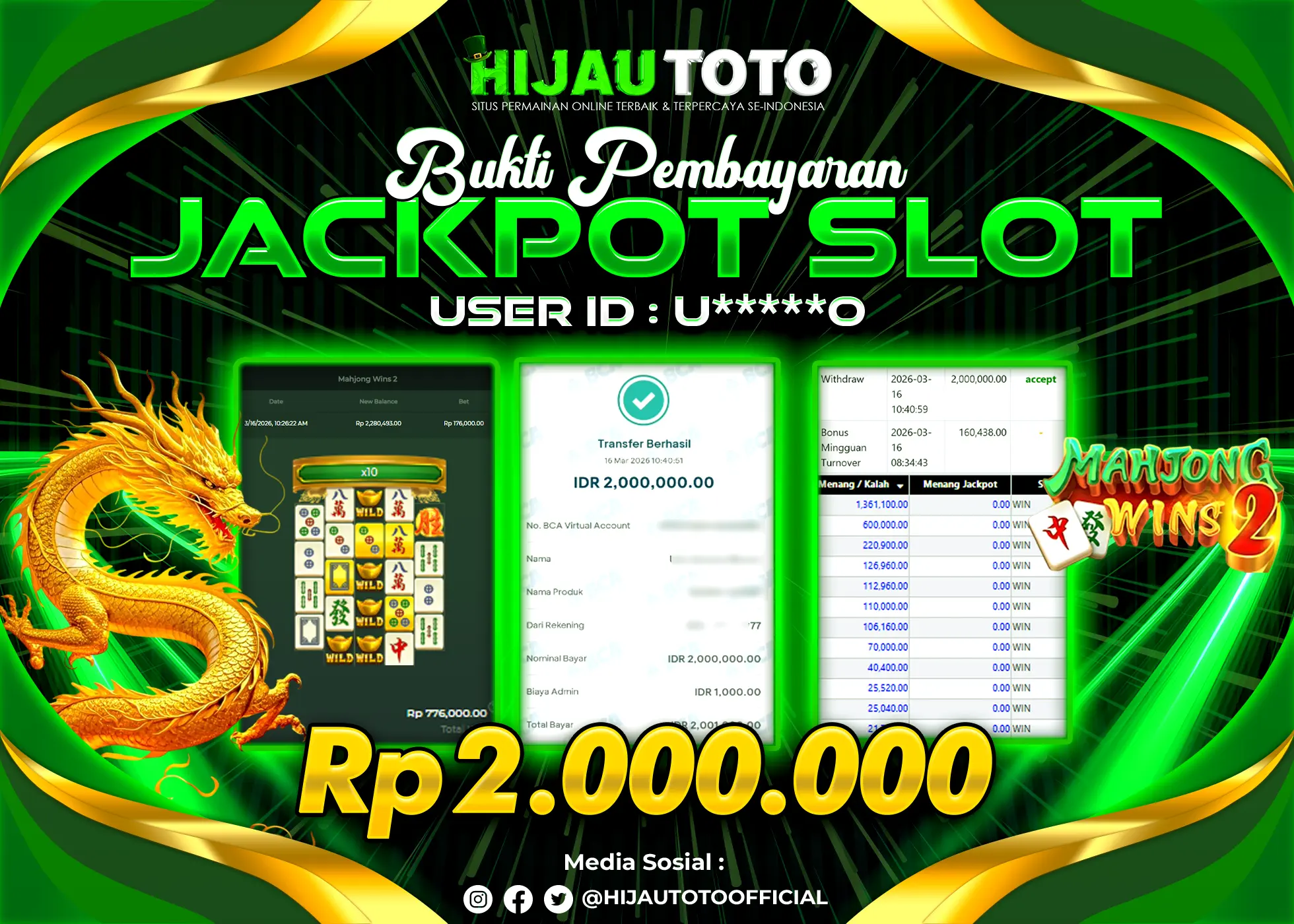 HIJAUTOTO adalah pilihan terbaik bagi Anda yang mencari platform judi online terpercaya dengan modal terjangkau, ragam permainan lengkap, bonus menguntungkan, dan layanan profesional 24 jam. Semua kebutuhan hiburan dan keuntungan Anda terpenuhi dalam satu tempat.