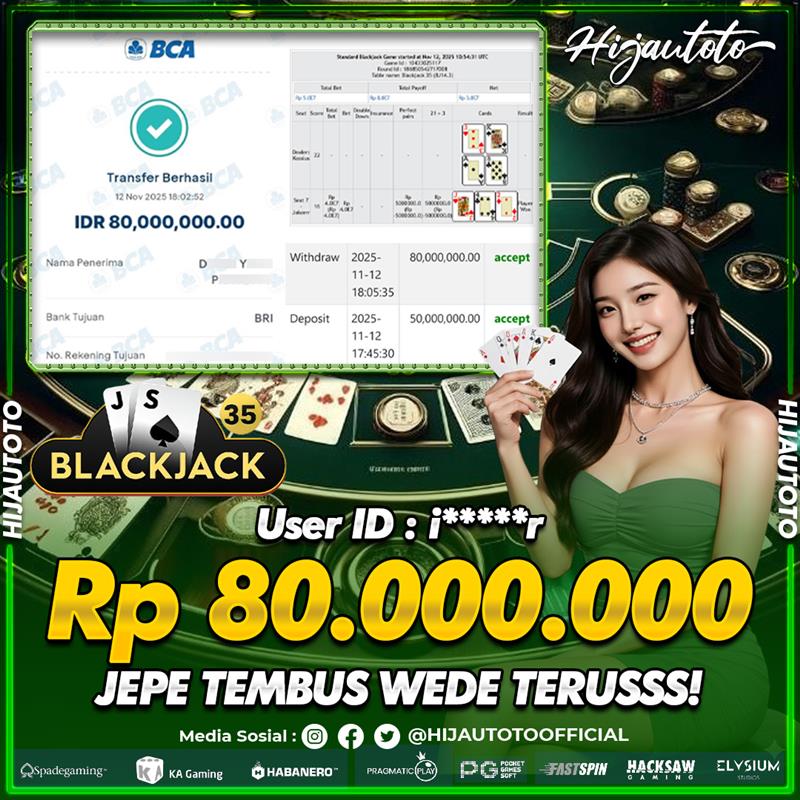 Selamat datang di HIJAUTOTO, tempatnya seru-seruan dan cuan besar! Mulai main cukup dengan modal Rp5.000 aja, taruhan super murah dari Rp100 perak! Mau main slot yang penuh warna? Atau togel dari 20 pasaran paling hits? Atau mungkin tembak ikan yang bikin deg-degan? Tenang, ada juga taruhan bola, sabung ayam, dan live casino yang bikin suasana makin hidup! Daftar sekarang dan dapetin bonus new member 100% langsung, biar modalmu makin tebal. Deposit gampang banget, bisa pakai QRIS, dan kalau butuh bantuan, customer service kita siap 24 jam nonstop. Jadi, tunggu apa lagi? Yuk, gabung dan bawa pulang kemenangannya cuma di HIJAUTOTO!