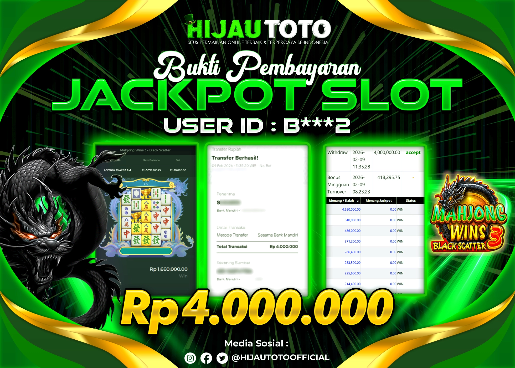 Selamat Kepada Member HIJAUTOTO B**** Telah Jackpot Di SLOT MAHJONG WINS 3 BLACK SCATTER
