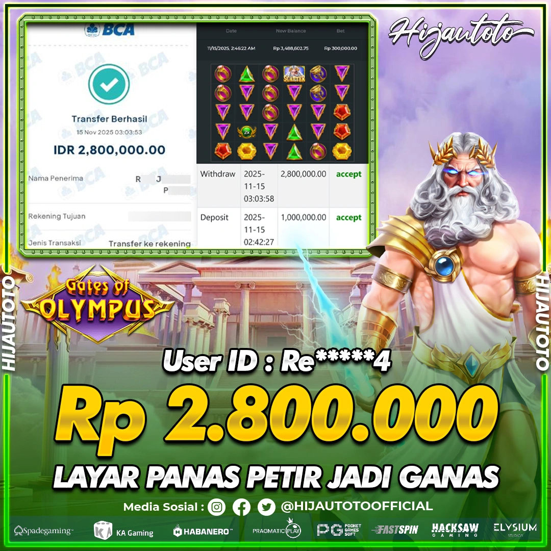 Karena berhasil memenangkan Rp.Rp.3.300.000 dari permainan seru SLOT GATES OF OLYMPUS SUPER SCATTER di HIJAUTOTO! πŸ’°πŸ’Έ