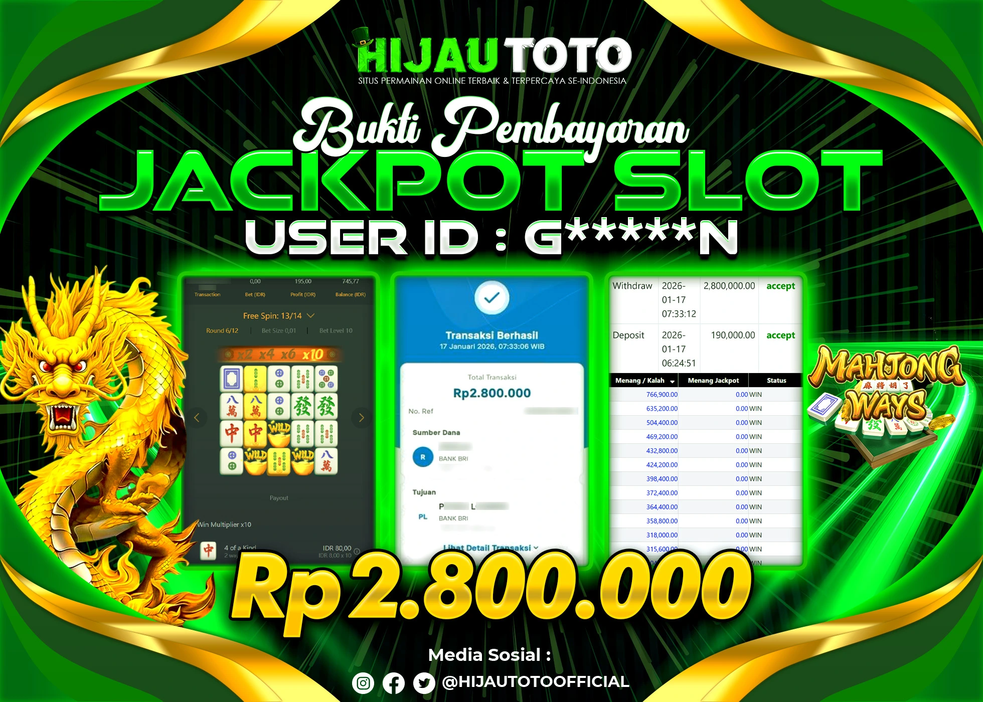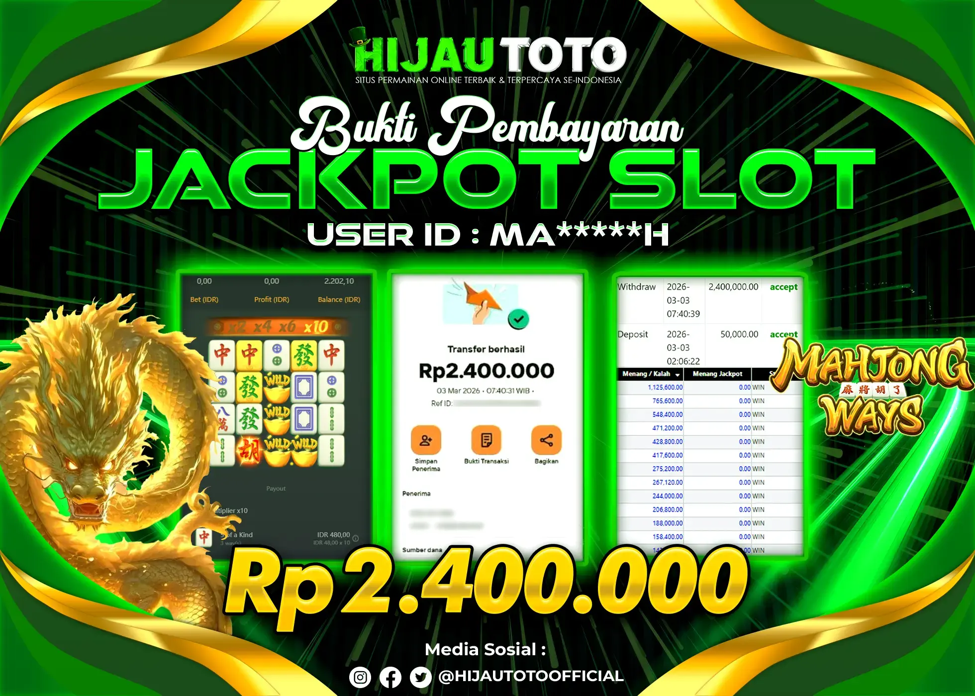 Bergabung dengan HIJAUTOTO sangat mudah dan cepat. Cukup lakukan pendaftaran dengan data lengkap, lakukan deposit minimal Rp5.000 melalui berbagai metode termasuk QRIS, dan mulai bertaruh dengan minimal taruhan Rp100. Dapatkan juga bonus new member 100% untuk modal bermain lebih besar.
