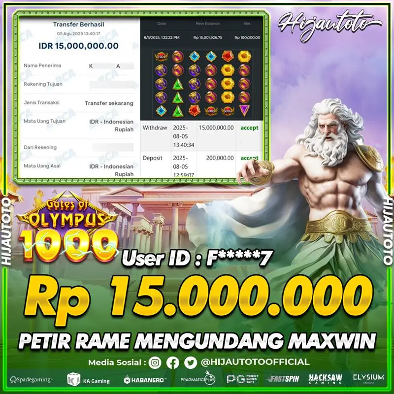 Karena berhasil memenangkan Rp.Rp.2.000.000 dari permainan seru SLOT GATES OF OLYMPUS 1000 di HIJAUTOTO! πŸ’°πŸ’Έ