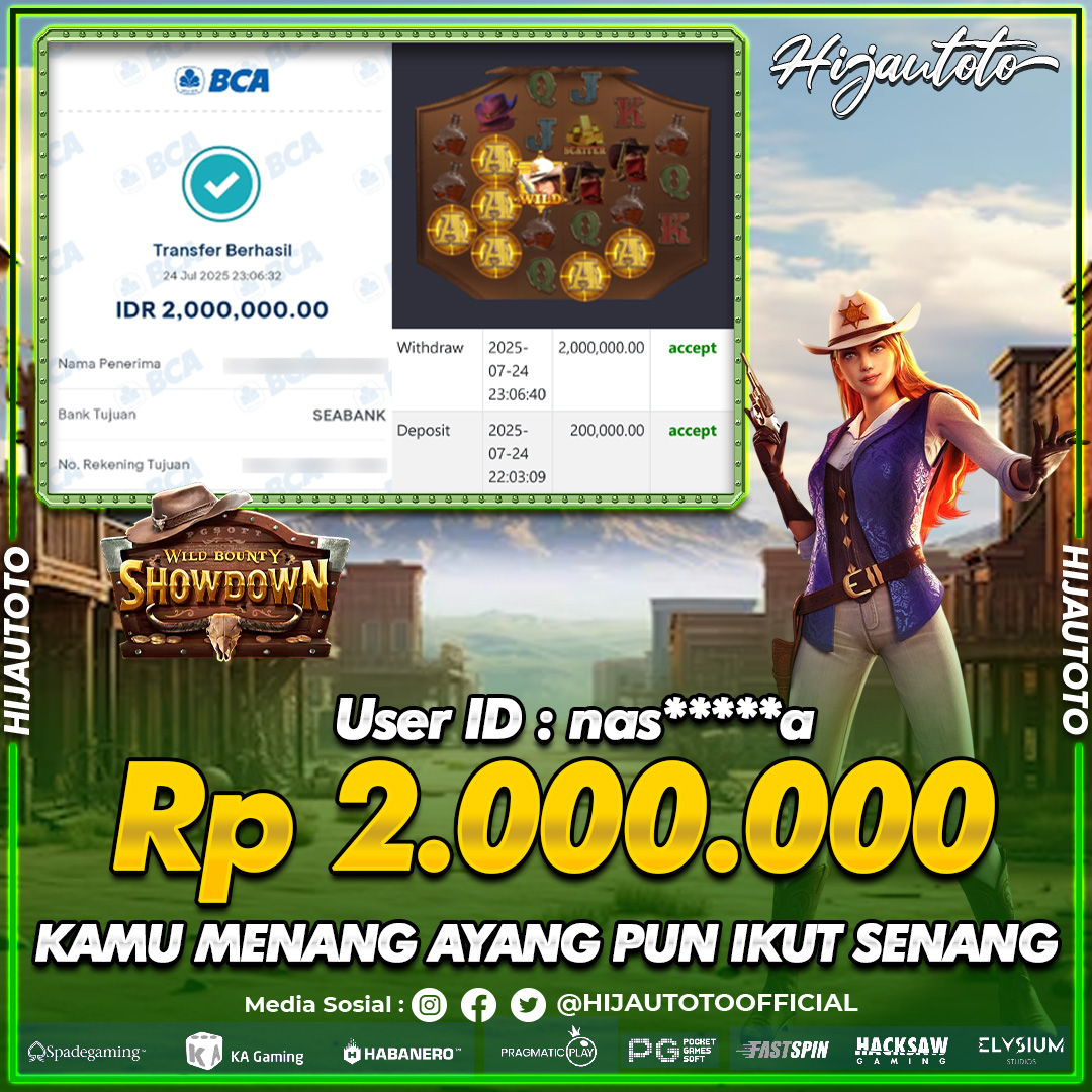 Selamat Kepada Member HIJAUTOTO NAS*****A Telah Jackpot Di SLOT WILD BOUNTY SHOWDOWN