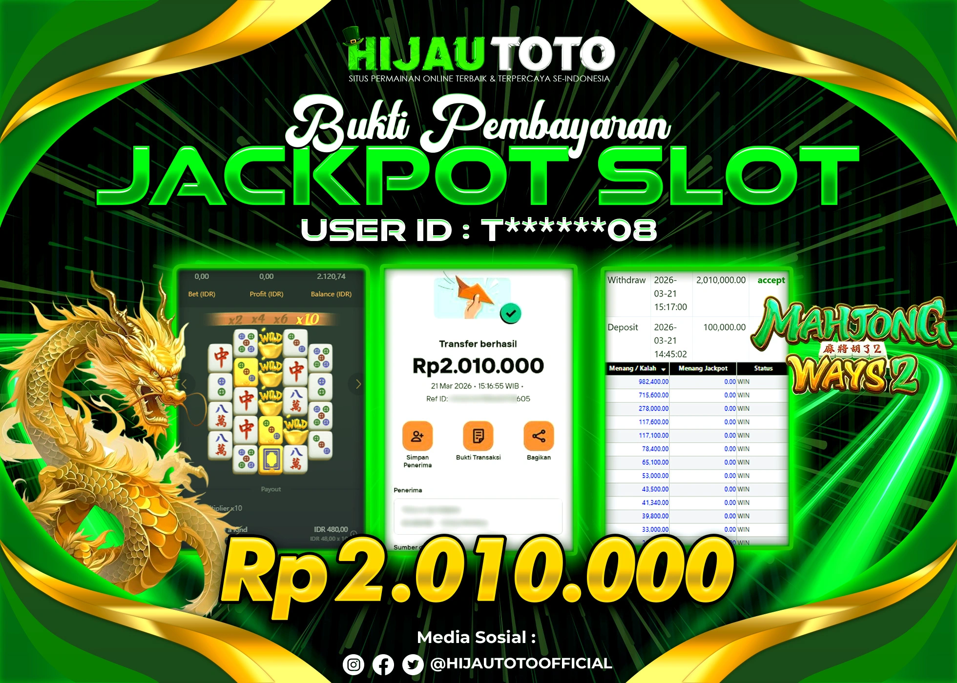 Bergabung dengan HIJAUTOTO sangat mudah dan cepat. Cukup lakukan pendaftaran dengan data lengkap, lakukan deposit minimal Rp5.000 melalui berbagai metode termasuk QRIS, dan mulai bertaruh dengan minimal taruhan Rp100. Dapatkan juga bonus new member 100% untuk modal bermain lebih besar.