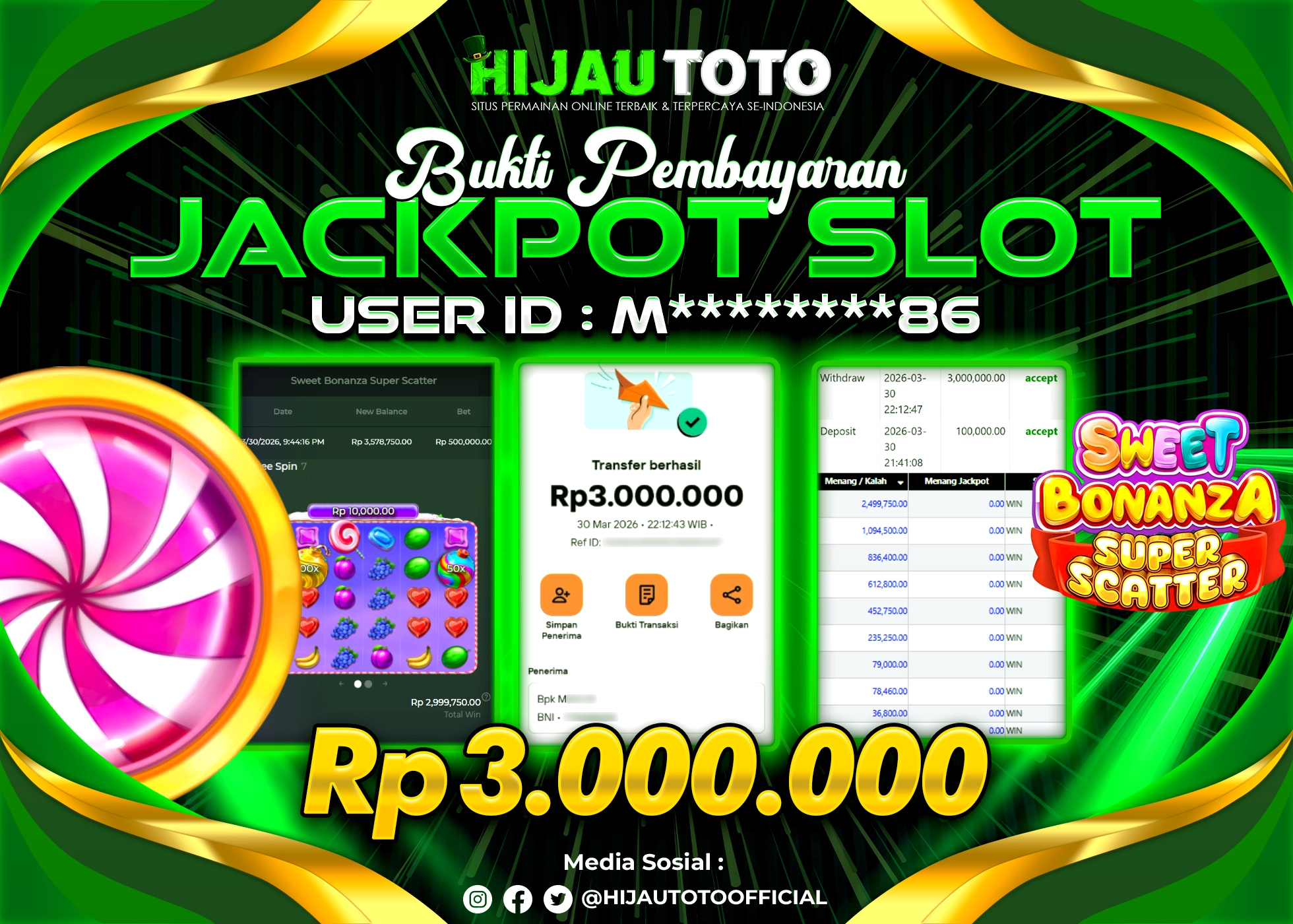 Selamat Kepada Member HIJAUTOTO M********86 Telah Jackpot Di SLOT SWEET BONANZA SUPER SCATTER