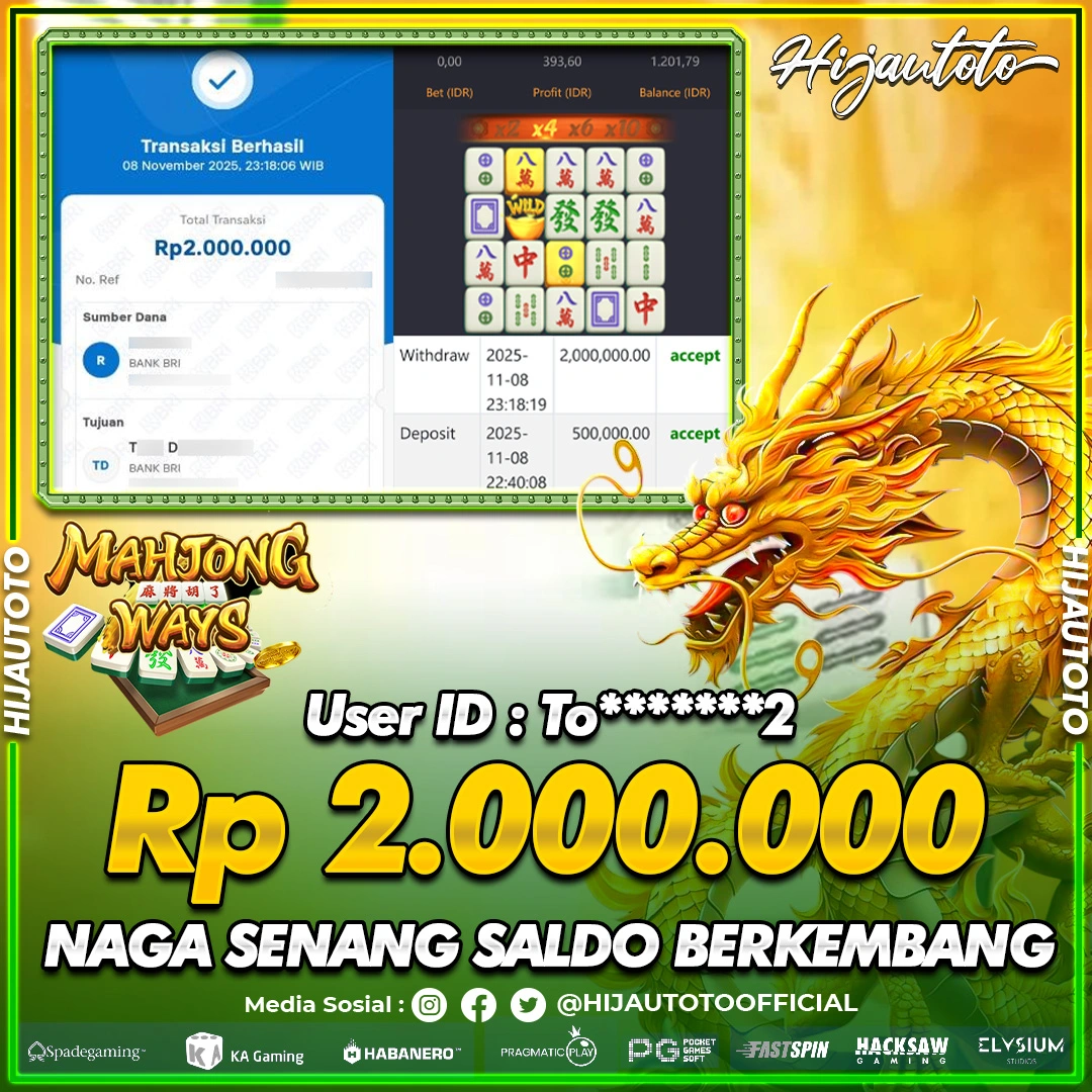 Selamat datang di HIJAUTOTO, tempatnya seru-seruan dan cuan besar! Mulai main cukup dengan modal Rp5.000 aja, taruhan super murah dari Rp100 perak! Mau main slot yang penuh warna? Atau togel dari 20 pasaran paling hits? Atau mungkin tembak ikan yang bikin deg-degan? Tenang, ada juga taruhan bola, sabung ayam, dan live casino yang bikin suasana makin hidup! Daftar sekarang dan dapetin bonus new member 100% langsung, biar modalmu makin tebal. Deposit gampang banget, bisa pakai QRIS, dan kalau butuh bantuan, customer service kita siap 24 jam nonstop. Jadi, tunggu apa lagi? Yuk, gabung dan bawa pulang kemenangannya cuma di HIJAUTOTO!