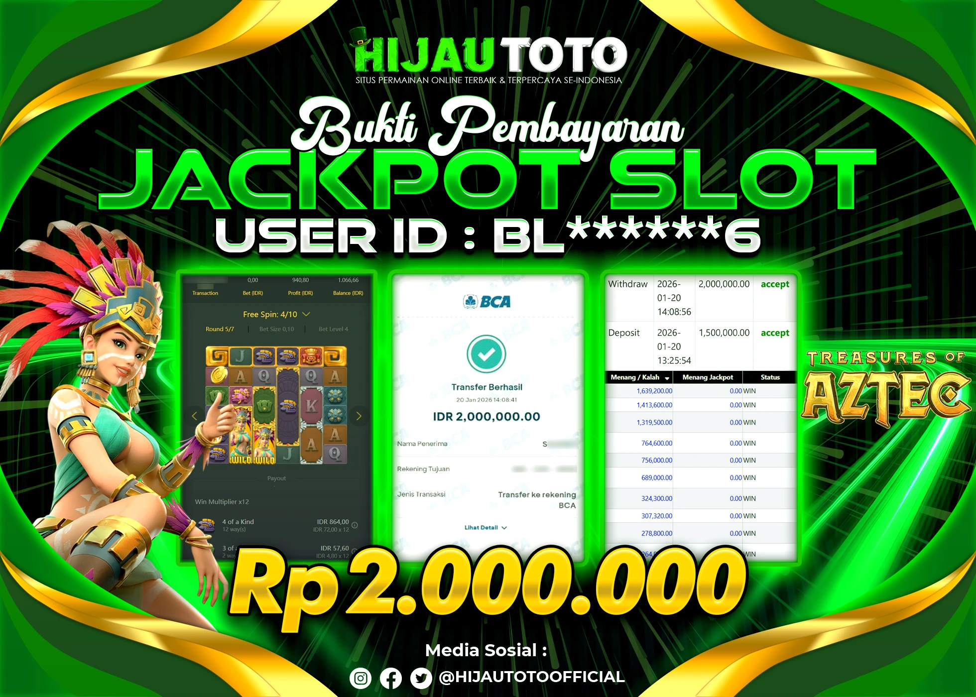 Selamat datang di HIJAUTOTO, tempatnya seru-seruan dan cuan besar! Mulai main cukup dengan modal Rp5.000 aja, taruhan super murah dari Rp100 perak! Mau main slot yang penuh warna? Atau togel dari 20 pasaran paling hits? Atau mungkin tembak ikan yang bikin deg-degan? Tenang, ada juga taruhan bola, sabung ayam, dan live casino yang bikin suasana makin hidup! Daftar sekarang dan dapetin bonus new member 100% langsung, biar modalmu makin tebal. Deposit gampang banget, bisa pakai QRIS, dan kalau butuh bantuan, customer service kita siap 24 jam nonstop. Jadi, tunggu apa lagi? Yuk, gabung dan bawa pulang kemenangannya cuma di HIJAUTOTO!