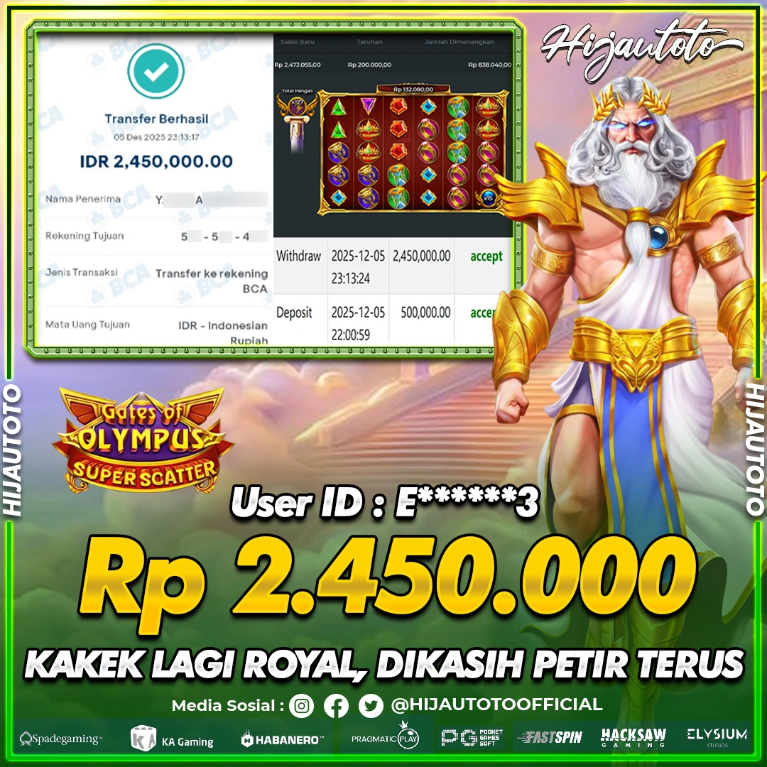 Selamat datang di HIJAUTOTO, tempatnya seru-seruan dan cuan besar! Mulai main cukup dengan modal Rp5.000 aja, taruhan super murah dari Rp100 perak! Mau main slot yang penuh warna? Atau togel dari 20 pasaran paling hits? Atau mungkin tembak ikan yang bikin deg-degan? Tenang, ada juga taruhan bola, sabung ayam, dan live casino yang bikin suasana makin hidup! Daftar sekarang dan dapetin bonus new member 100% langsung, biar modalmu makin tebal. Deposit gampang banget, bisa pakai QRIS, dan kalau butuh bantuan, customer service kita siap 24 jam nonstop. Jadi, tunggu apa lagi? Yuk, gabung dan bawa pulang kemenangannya cuma di HIJAUTOTO!