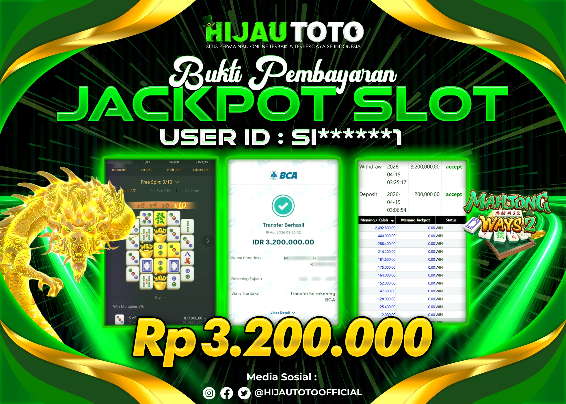 Bergabung dengan HIJAUTOTO sangat mudah dan cepat. Cukup lakukan pendaftaran dengan data lengkap, lakukan deposit minimal Rp5.000 melalui berbagai metode termasuk QRIS, dan mulai bertaruh dengan minimal taruhan Rp100. Dapatkan juga bonus new member 100% untuk modal bermain lebih besar.