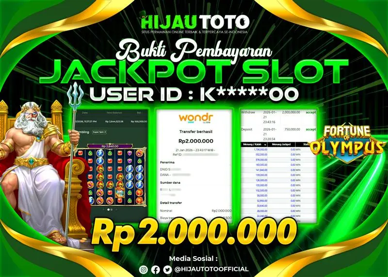 Selamat datang di HIJAUTOTO, tempatnya seru-seruan dan cuan besar! Mulai main cukup dengan modal Rp5.000 aja, taruhan super murah dari Rp100 perak! Mau main slot yang penuh warna? Atau togel dari 20 pasaran paling hits? Atau mungkin tembak ikan yang bikin deg-degan? Tenang, ada juga taruhan bola, sabung ayam, dan live casino yang bikin suasana makin hidup! Daftar sekarang dan dapetin bonus new member 100% langsung, biar modalmu makin tebal. Deposit gampang banget, bisa pakai QRIS, dan kalau butuh bantuan, customer service kita siap 24 jam nonstop. Jadi, tunggu apa lagi? Yuk, gabung dan bawa pulang kemenangannya cuma di HIJAUTOTO!