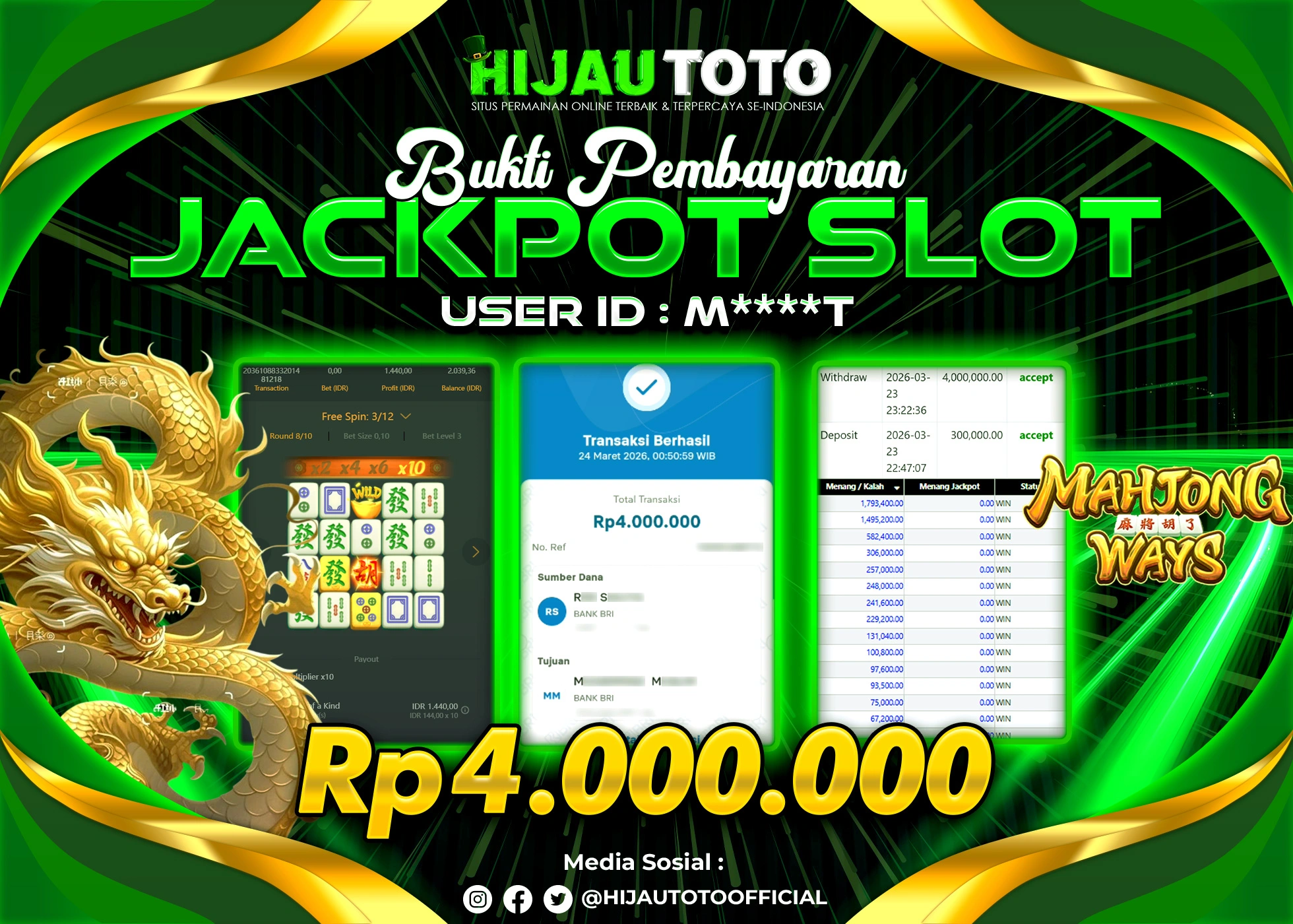 Bergabung dengan HIJAUTOTO sangat mudah dan cepat. Cukup lakukan pendaftaran dengan data lengkap, lakukan deposit minimal Rp5.000 melalui berbagai metode termasuk QRIS, dan mulai bertaruh dengan minimal taruhan Rp100. Dapatkan juga bonus new member 100% untuk modal bermain lebih besar.