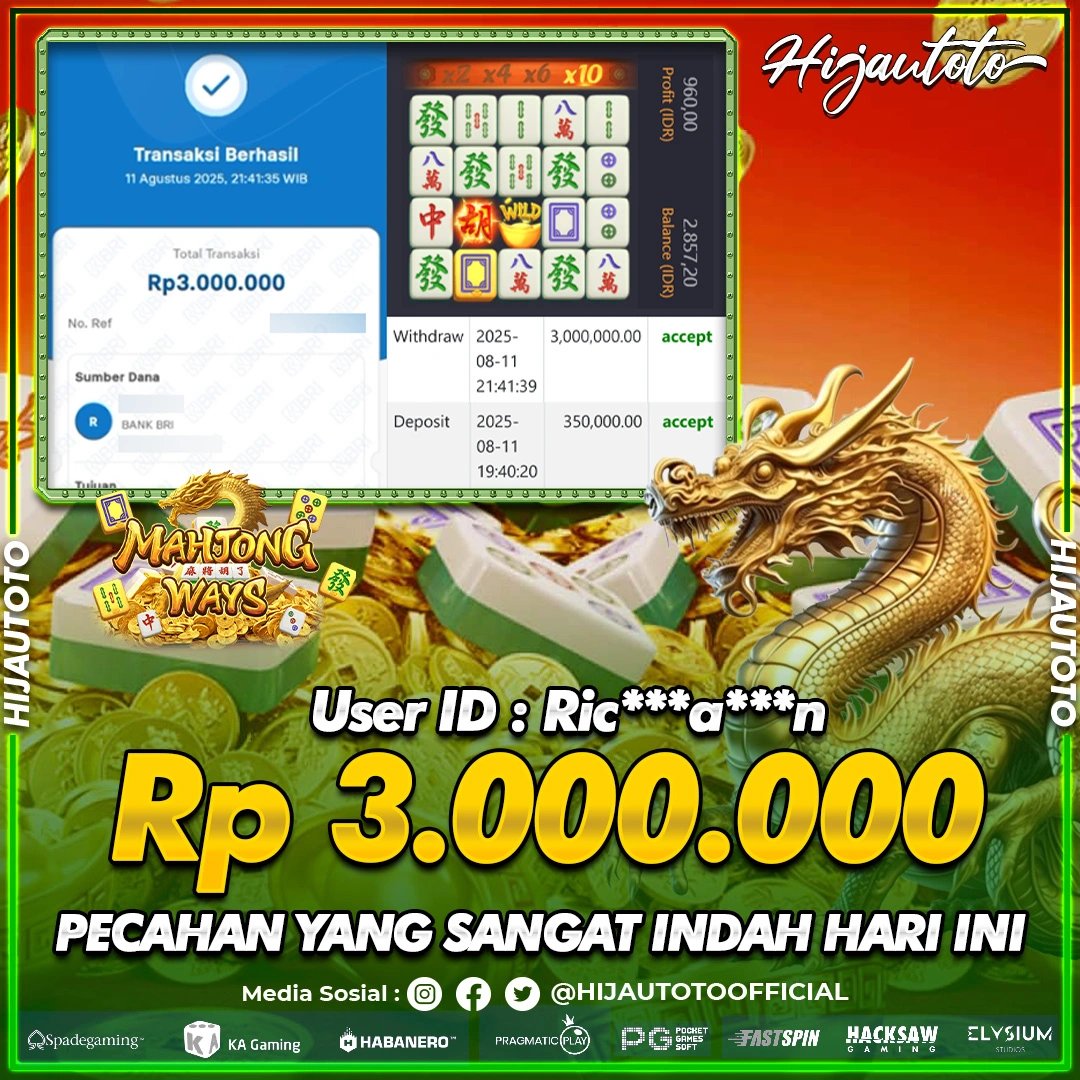 Selamat datang di HIJAUTOTO, tempatnya seru-seruan dan cuan besar! Mulai main cukup dengan modal Rp5.000 aja, taruhan super murah dari Rp100 perak! Mau main slot yang penuh warna? Atau togel dari 20 pasaran paling hits? Atau mungkin tembak ikan yang bikin deg-degan? Tenang, ada juga taruhan bola, sabung ayam, dan live casino yang bikin suasana makin hidup! Daftar sekarang dan dapetin bonus new member 100% langsung, biar modalmu makin tebal. Deposit gampang banget, bisa pakai QRIS, dan kalau butuh bantuan, customer service kita siap 24 jam nonstop. Jadi, tunggu apa lagi? Yuk, gabung dan bawa pulang kemenangannya cuma di HIJAUTOTO!