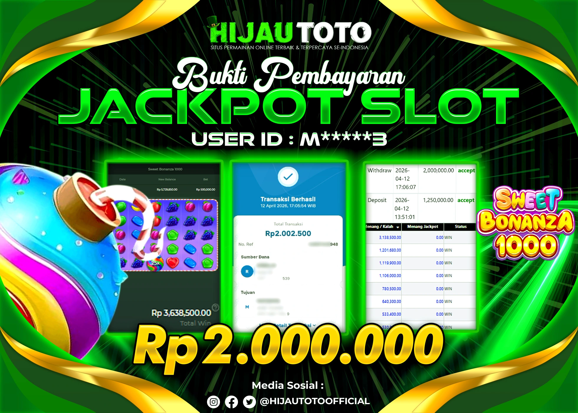 Selamat datang di HIJAUTOTO, tempatnya seru-seruan dan cuan besar! Mulai main cukup dengan modal Rp5.000 aja, taruhan super murah dari Rp100 perak! Mau main slot yang penuh warna? Atau togel dari 20 pasaran paling hits? Atau mungkin tembak ikan yang bikin deg-degan? Tenang, ada juga taruhan bola, sabung ayam, dan live casino yang bikin suasana makin hidup! Daftar sekarang dan dapetin bonus new member 100% langsung, biar modalmu makin tebal. Deposit gampang banget, bisa pakai QRIS, dan kalau butuh bantuan, customer service kita siap 24 jam nonstop. Jadi, tunggu apa lagi? Yuk, gabung dan bawa pulang kemenangannya cuma di HIJAUTOTO!