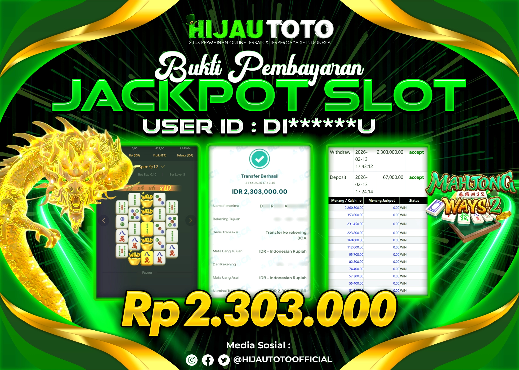 Selamat datang di HIJAUTOTO, tempatnya seru-seruan dan cuan besar! Mulai main cukup dengan modal Rp5.000 aja, taruhan super murah dari Rp100 perak! Mau main slot yang penuh warna? Atau togel dari 20 pasaran paling hits? Atau mungkin tembak ikan yang bikin deg-degan? Tenang, ada juga taruhan bola, sabung ayam, dan live casino yang bikin suasana makin hidup! Daftar sekarang dan dapetin bonus new member 100% langsung, biar modalmu makin tebal. Deposit gampang banget, bisa pakai QRIS, dan kalau butuh bantuan, customer service kita siap 24 jam nonstop. Jadi, tunggu apa lagi? Yuk, gabung dan bawa pulang kemenangannya cuma di HIJAUTOTO!