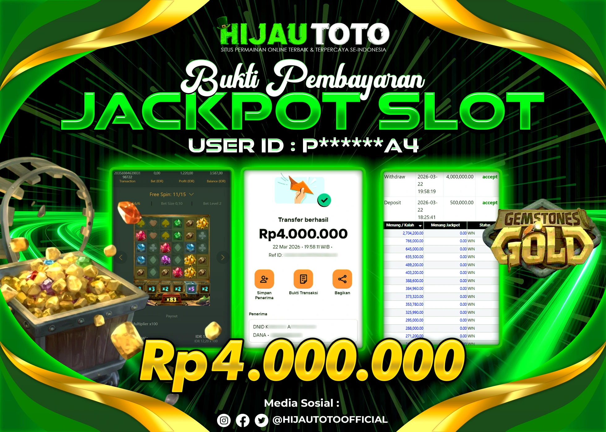 Bergabung dengan HIJAUTOTO sangat mudah dan cepat. Cukup lakukan pendaftaran dengan data lengkap, lakukan deposit minimal Rp5.000 melalui berbagai metode termasuk QRIS, dan mulai bertaruh dengan minimal taruhan Rp100. Dapatkan juga bonus new member 100% untuk modal bermain lebih besar.