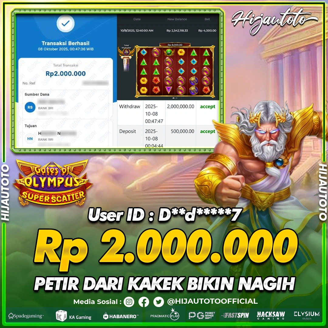 Karena berhasil memenangkan Rp.Rp.8.300.000 dari permainan seru SLOT GATES OF OLYMPUS SUPER SCATTER di HIJAUTOTO! πŸ’°πŸ’Έ