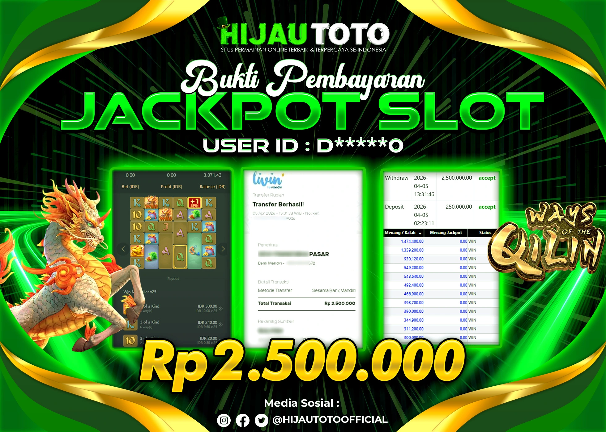 Selamat Kepada Member HIJAUTOTO D******0 Telah Jackpot Di SLOT WAYS OF THE QILIN