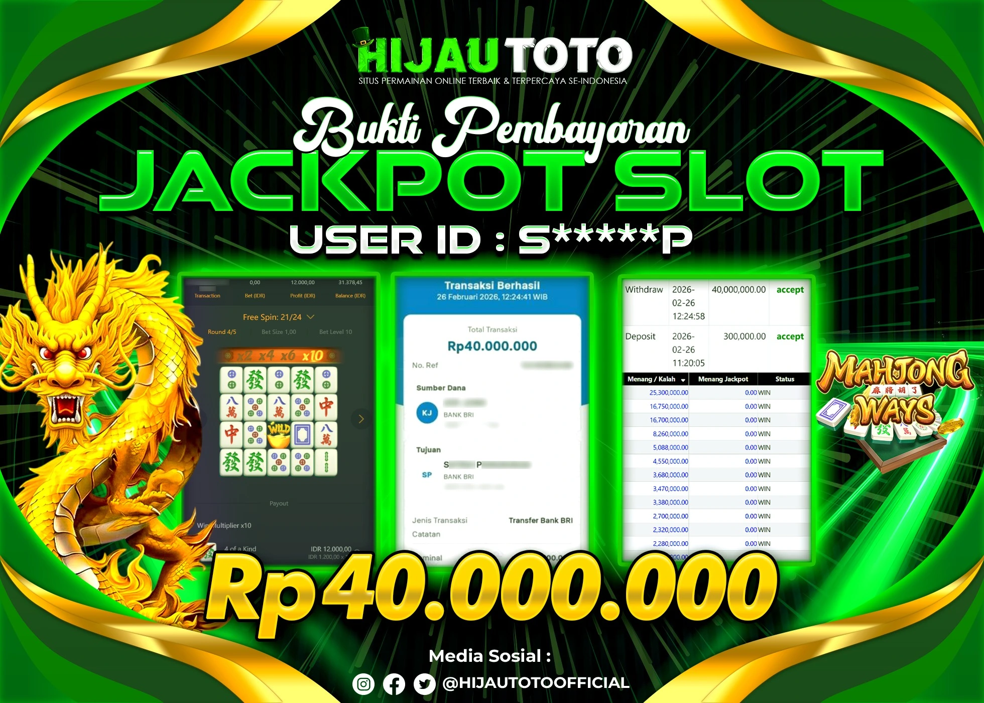 Selamat datang di HIJAUTOTO, tempatnya seru-seruan dan cuan besar! Mulai main cukup dengan modal Rp5.000 aja, taruhan super murah dari Rp100 perak! Mau main slot yang penuh warna? Atau togel dari 20 pasaran paling hits? Atau mungkin tembak ikan yang bikin deg-degan? Tenang, ada juga taruhan bola, sabung ayam, dan live casino yang bikin suasana makin hidup! Daftar sekarang dan dapetin bonus new member 100% langsung, biar modalmu makin tebal. Deposit gampang banget, bisa pakai QRIS, dan kalau butuh bantuan, customer service kita siap 24 jam nonstop. Jadi, tunggu apa lagi? Yuk, gabung dan bawa pulang kemenangannya cuma di HIJAUTOTO!