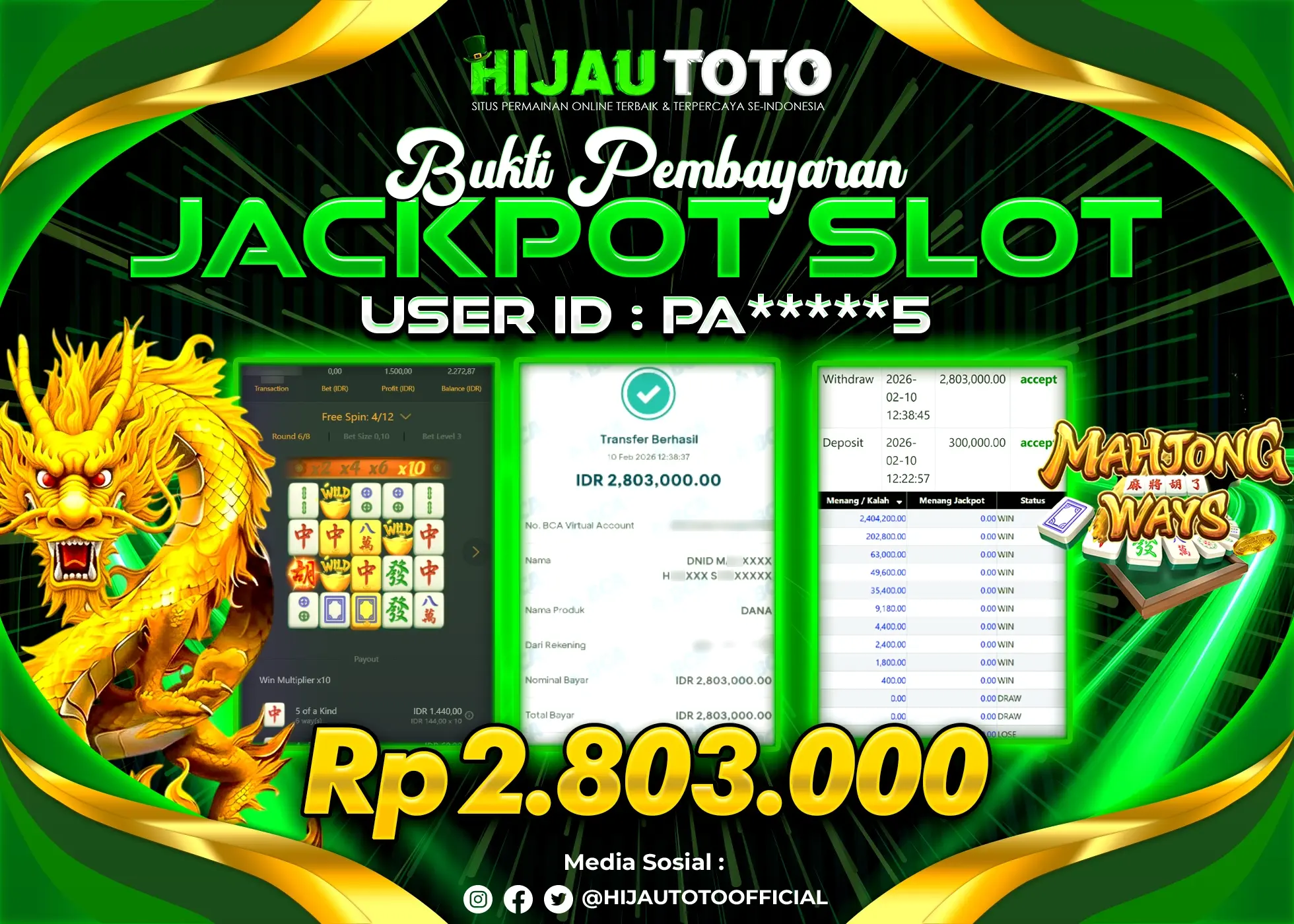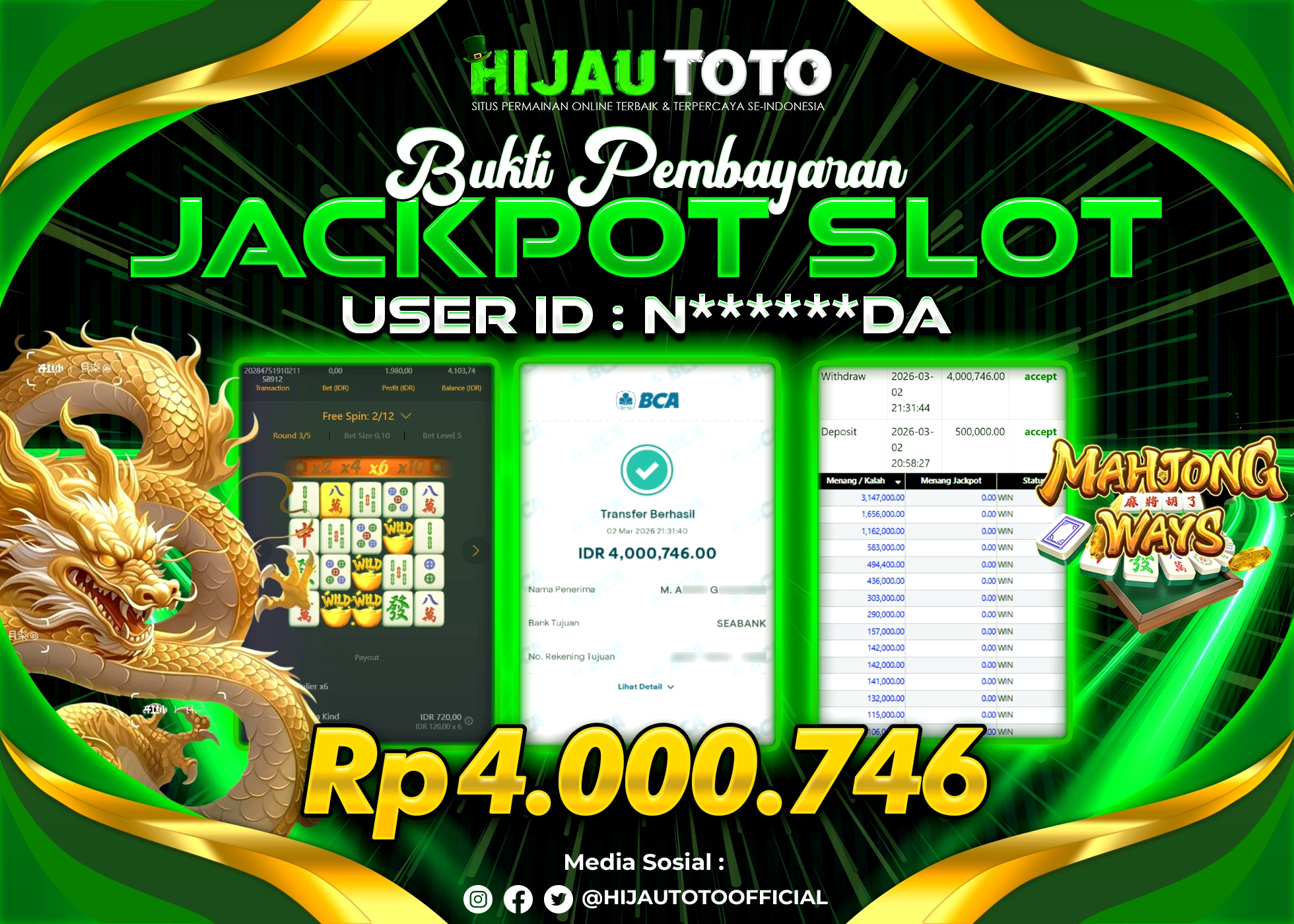 Bergabung dengan HIJAUTOTO sangat mudah dan cepat. Cukup lakukan pendaftaran dengan data lengkap, lakukan deposit minimal Rp5.000 melalui berbagai metode termasuk QRIS, dan mulai bertaruh dengan minimal taruhan Rp100. Dapatkan juga bonus new member 100% untuk modal bermain lebih besar.