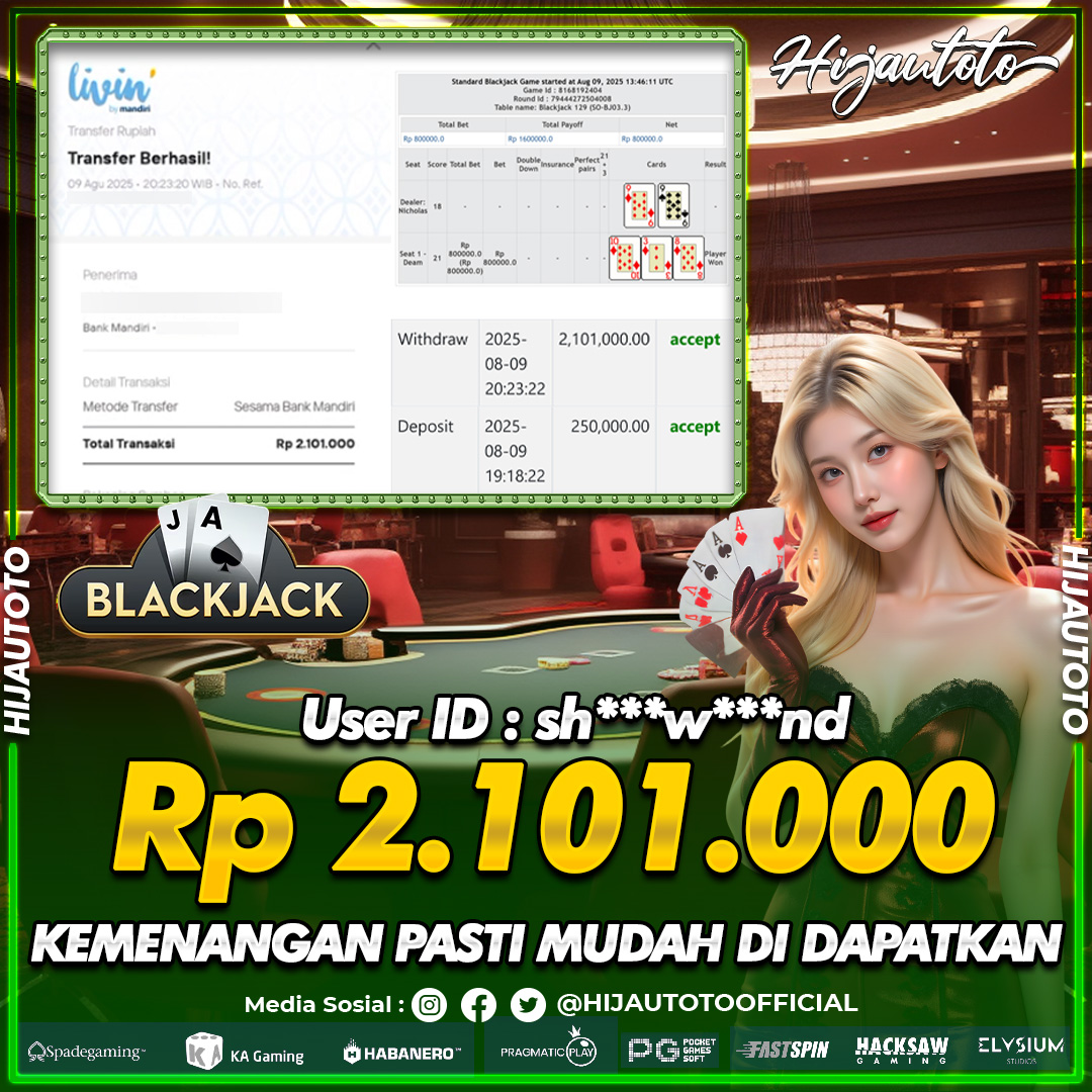 Nikmati pengalaman bermain casino langsung dari dealer profesional dalam fitur Live Casino HIJAUTOTO. Bermain blackjack, roulette, baccarat, dan permainan casino klasik lainnya secara real-time dengan suasana yang autentik dan interaktif.